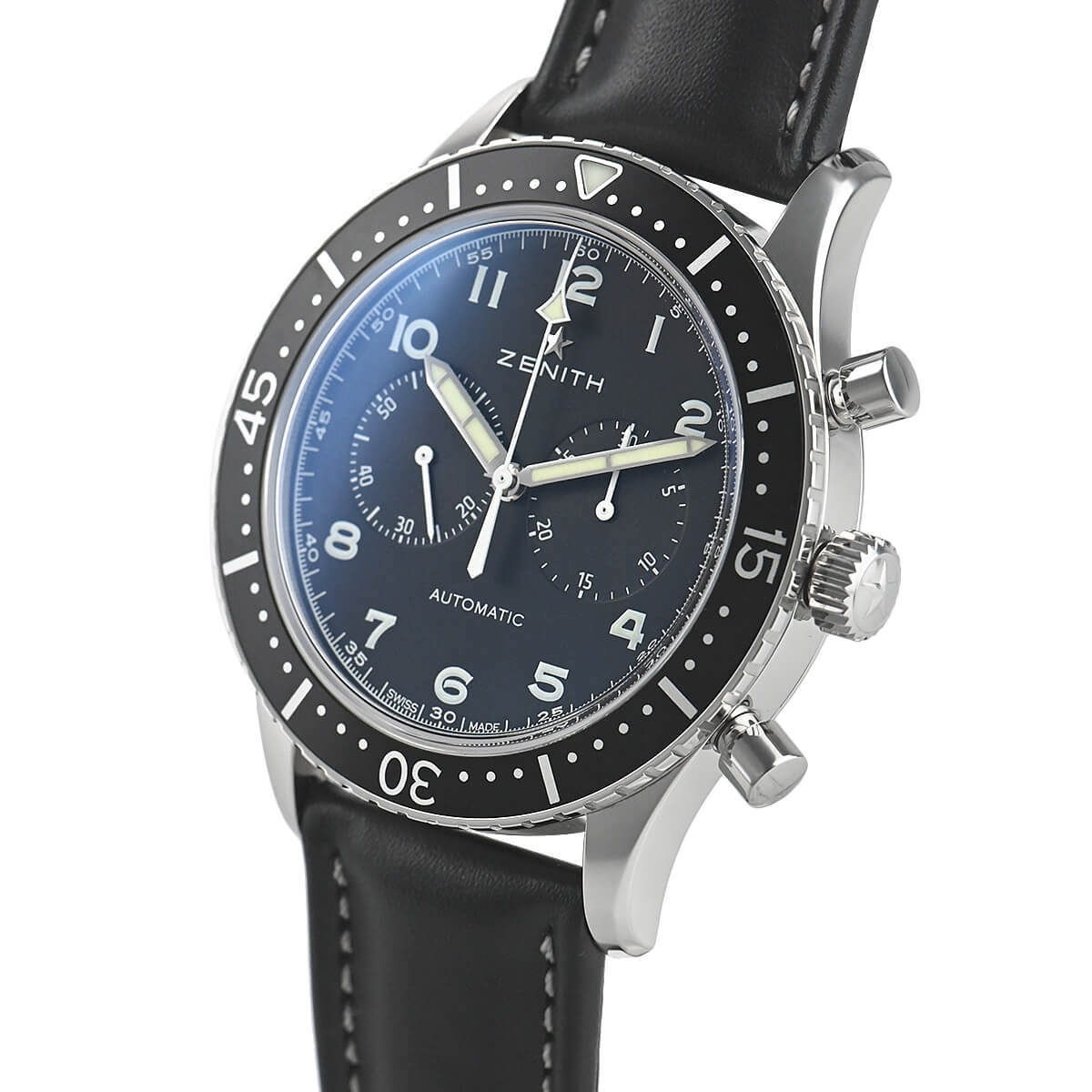 1960年代にイタリア・ローマのA.カイレリ社を通じてイタリア空軍に納入された「クロノメトロ TIPO CP-2」は、カイレリ社に依頼を受けたゼニスが製造したツーカウンタークロノグラフでした。当時はまだこの世に名機「エルプリメロ」が誕生する前となり、オリジナルモデルのCP-2には手巻きキャリバーの「DP146」を搭載していましたが、世界限定1000本で復刻されたこちらの「ヘリテージ クロノメトロTIPO CP-2」には自動巻きのエルプリメロを搭載します。