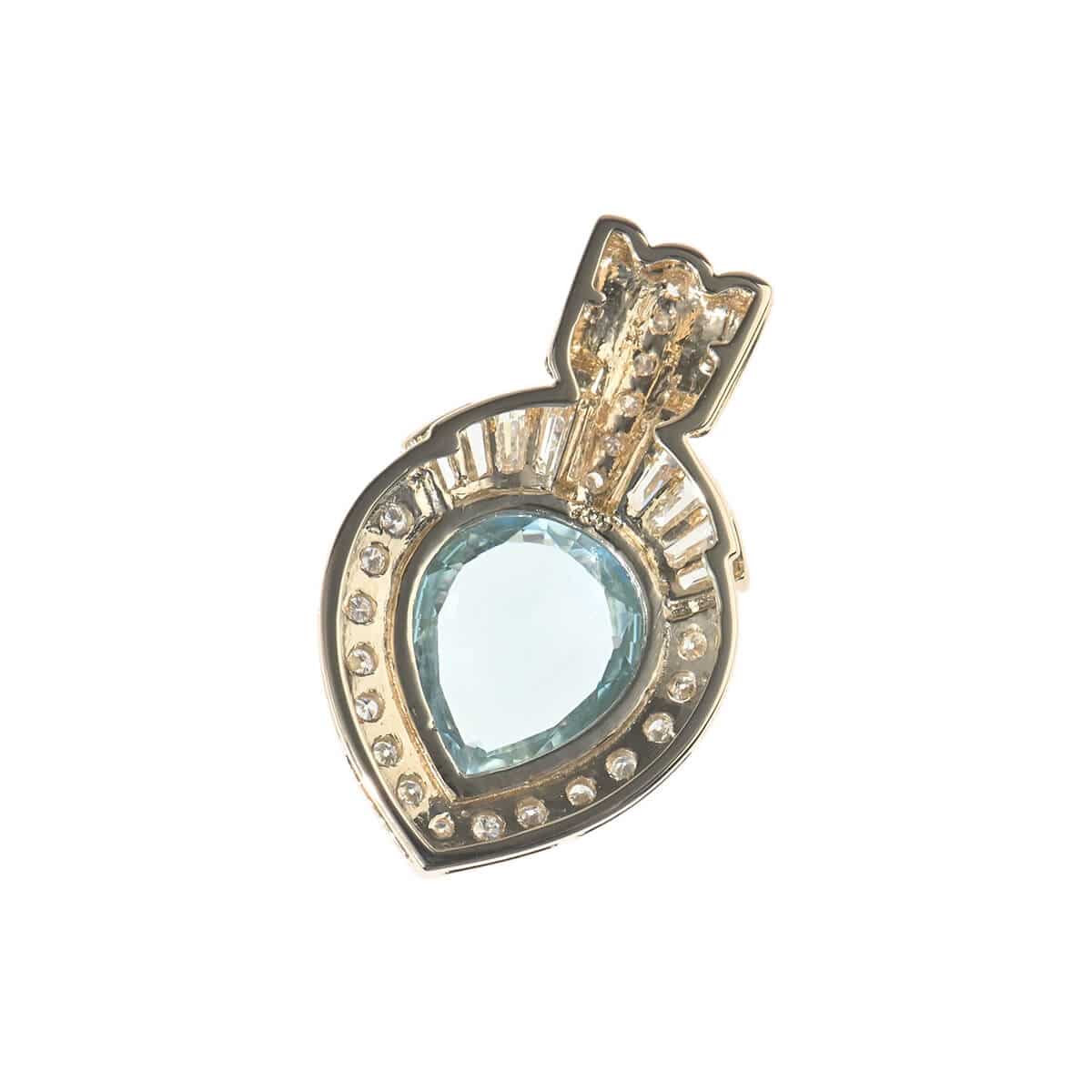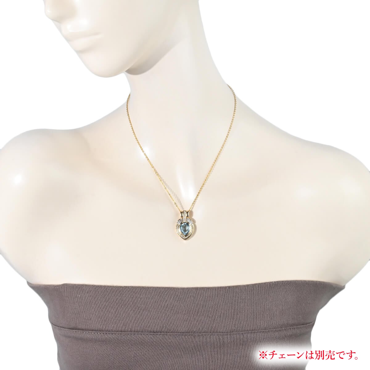 大粒のペアシェイプブルートパーズがセンターにあしらわれた、イエローゴールド製ペンダントヘッド。天然石ならではの瑞々しさにあふれたブルートパーズと華やかなゴールド、そしてダイヤモンドの輝きの色彩豊かなコントラストが目を惹きます。チェーンネックレスにあしらってデイリーに、首に沿うチョーカーでエレガントに、レザーやコットンのコードでカジュアルダウンしても素敵です。装いや気分で、自分だけのコーディネートを楽しんでください。