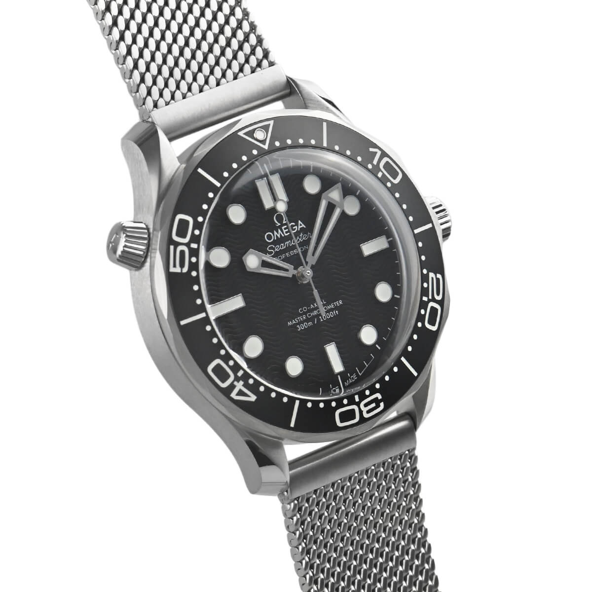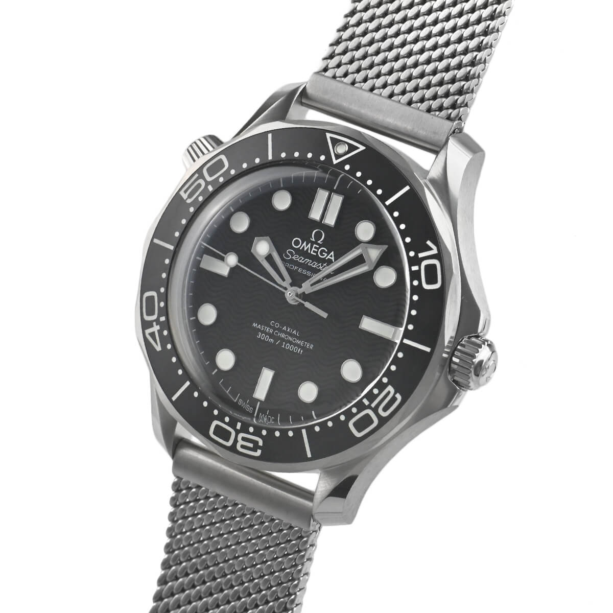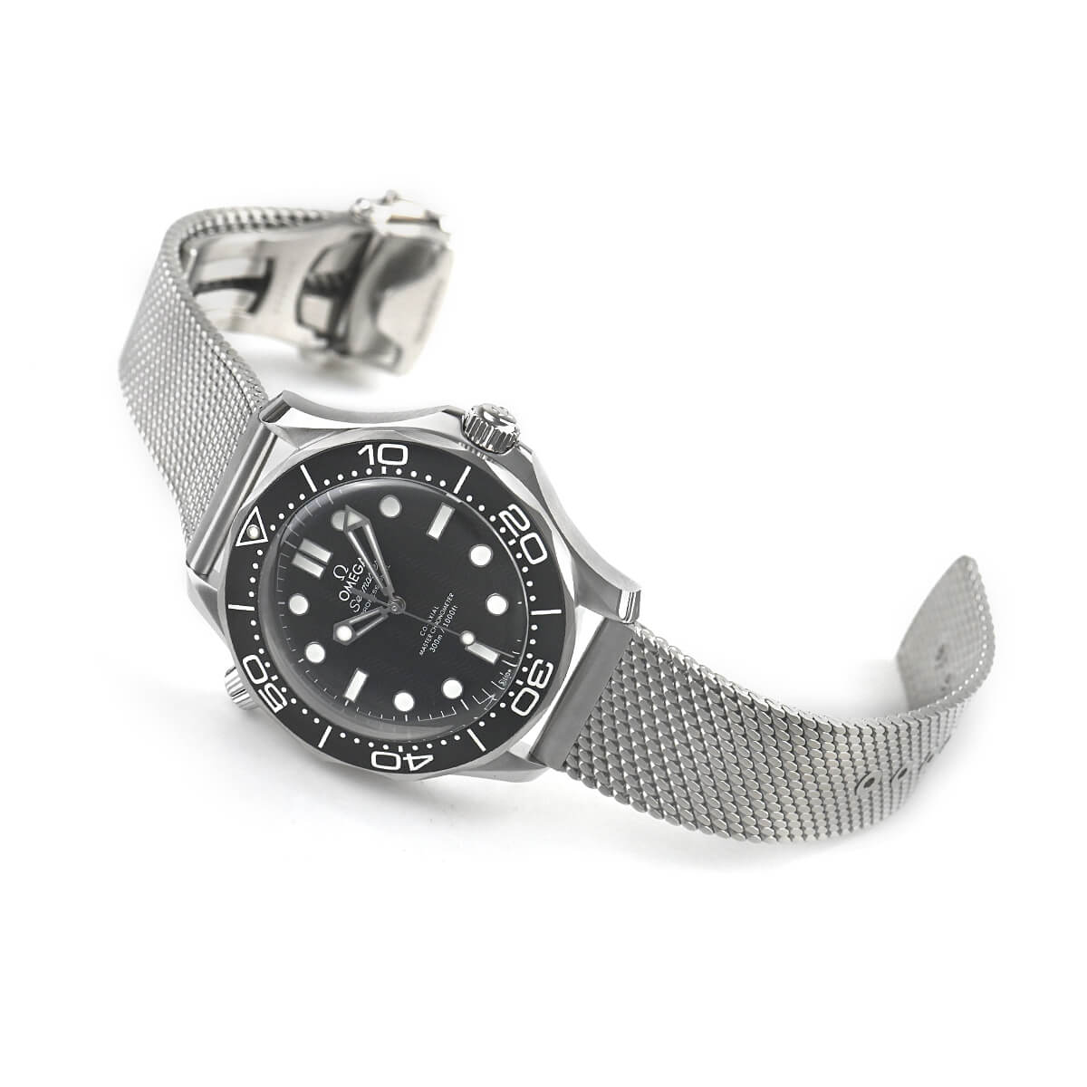 1993年に発表された【シーマスター ダイバー300M】が、25周年を迎えた2018年にフルモデルチェンジを果たしました。こちらは2024年発表モデル。シュウ酸アルマイト処理を施したブラックのアルミニウム製ベゼルリングに、ホワイトスーパールミノヴァが塗布されたダイビングスケールを備えています。