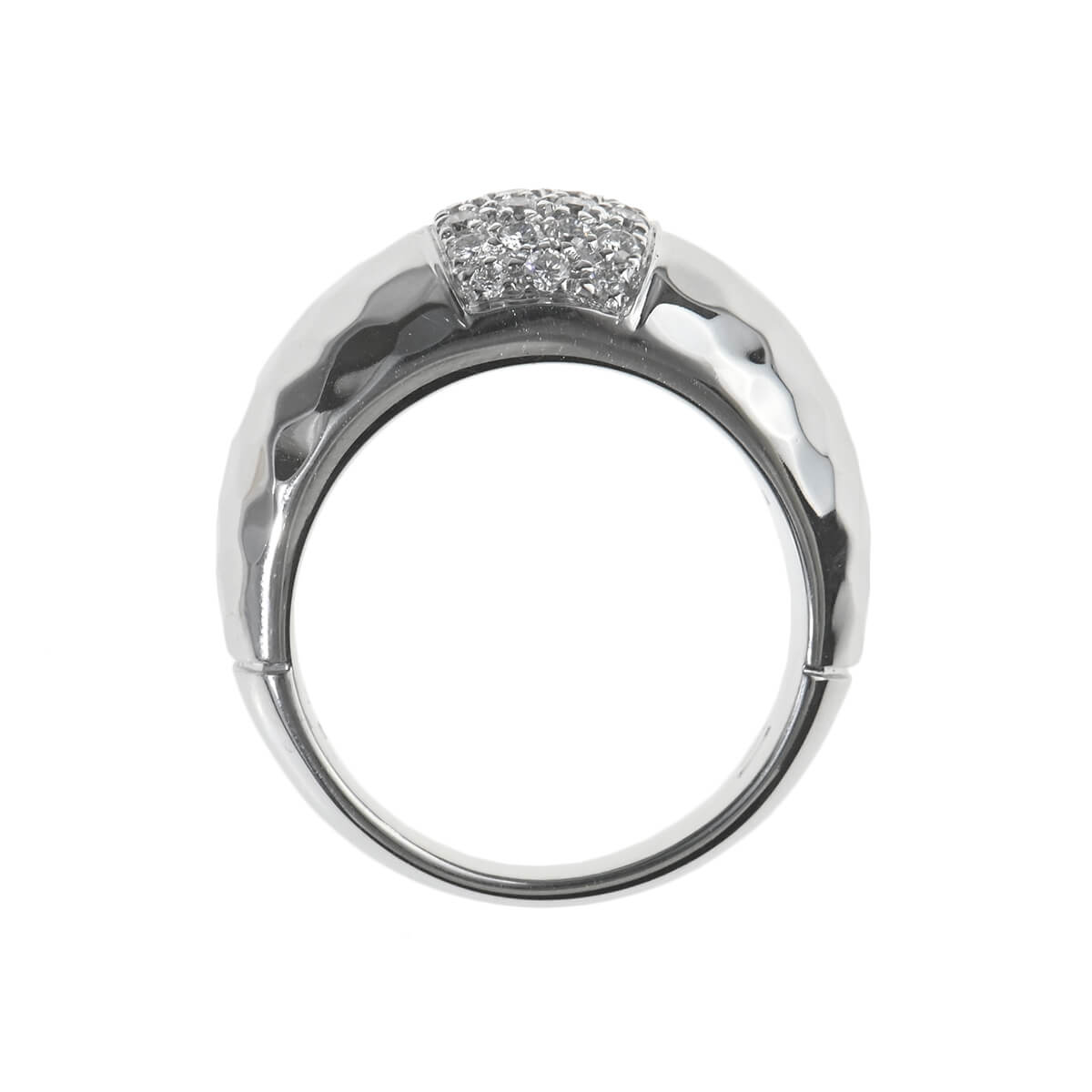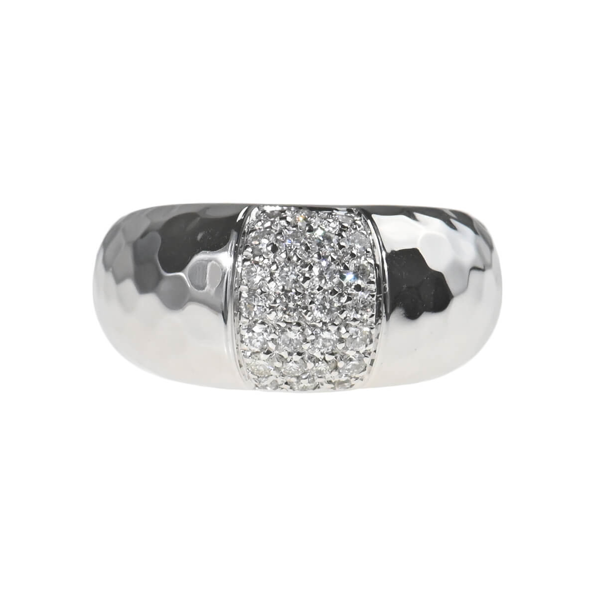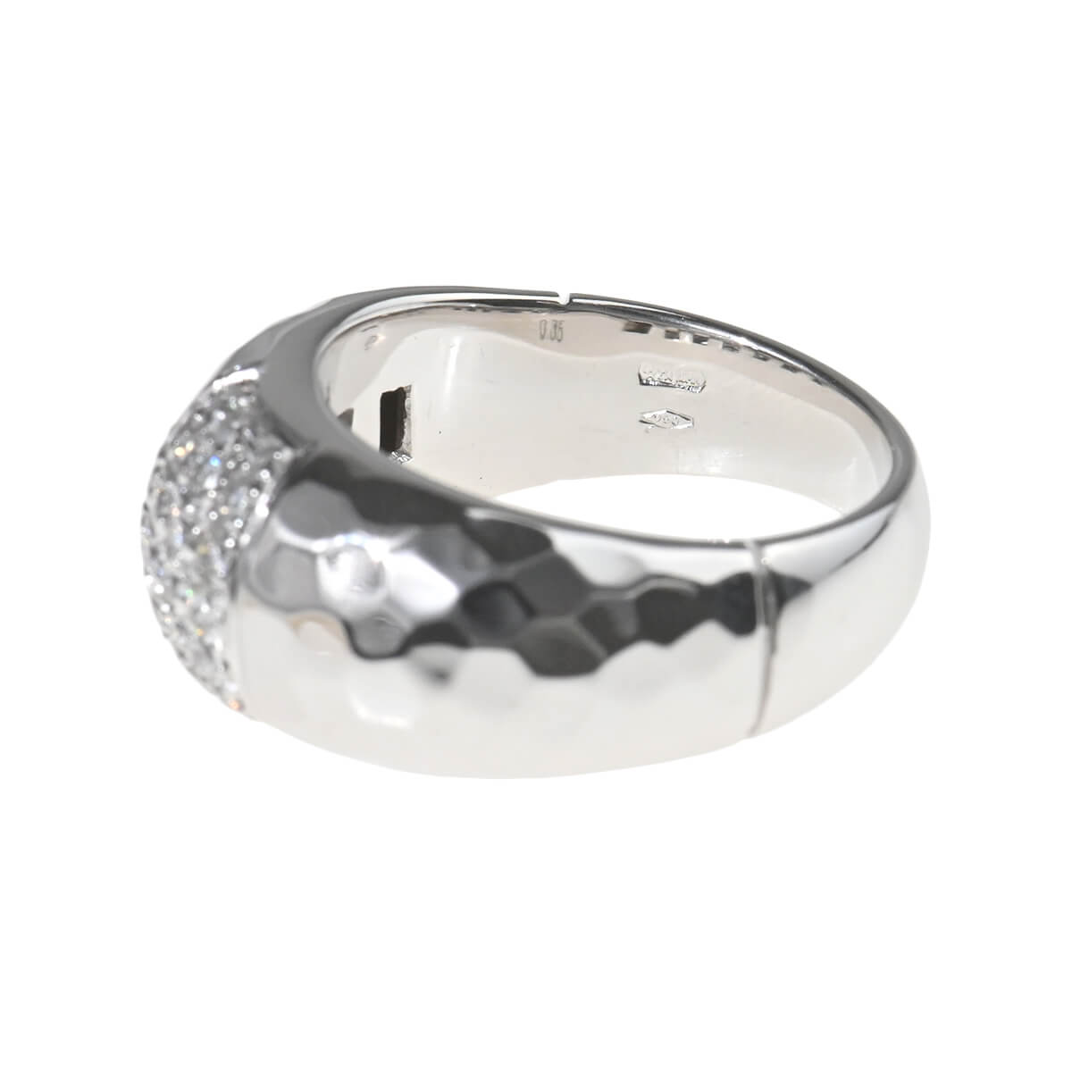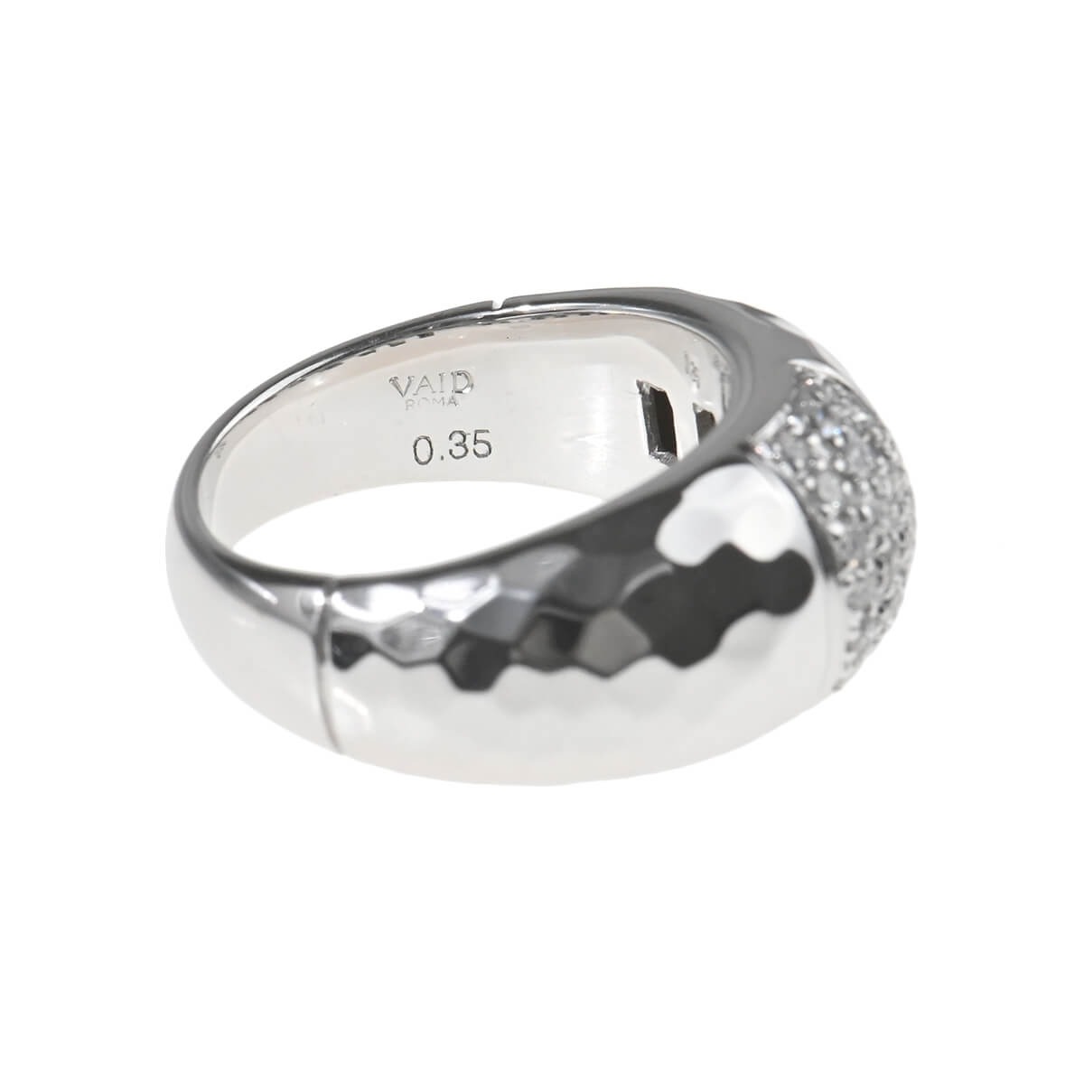 卓越した職人技による、繊細なハンドメイドチェーンで世界的に知られる『VAID(ヴェイド)』。伝統ある確かな技術と常に新しさと創造性を追究することをコンセプトにもち、決してオーバーデザインにはならない日常生活にマッチするエレガントさを大切にハンドメイドジュエリーをつくり続けている、1929年にイタリアで創業した、名門ジュエリーブランドです。ボリュームあるフォルムが美しいホワイトゴールドのアームに、眩く煌めくダイヤモンドがパヴェセッティングされた、華やかでありながら華美になりすぎない品格も感じられるリング。職人の技術が光る、アーム部分に施された艶やかな加工がダイヤモンドの透明感あふれる美しい存在感を一層引き立てています。イタリアンジュエリーらしく、シンプルな中にさりげない個性をもつダイヤモンドジュエリーです。