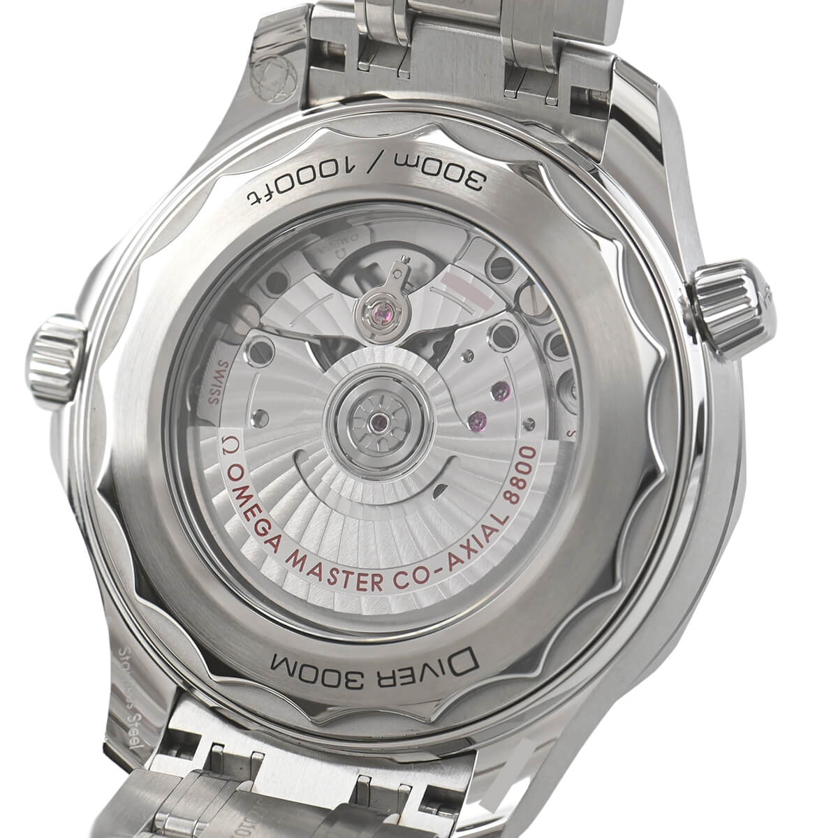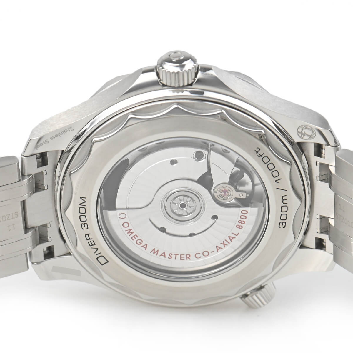 シースルーバックから覗く美しいムーブメントにはスイス連邦計量・認定局(METAS)が認定したマスタークロノメーターのキャリバー8800を搭載します。