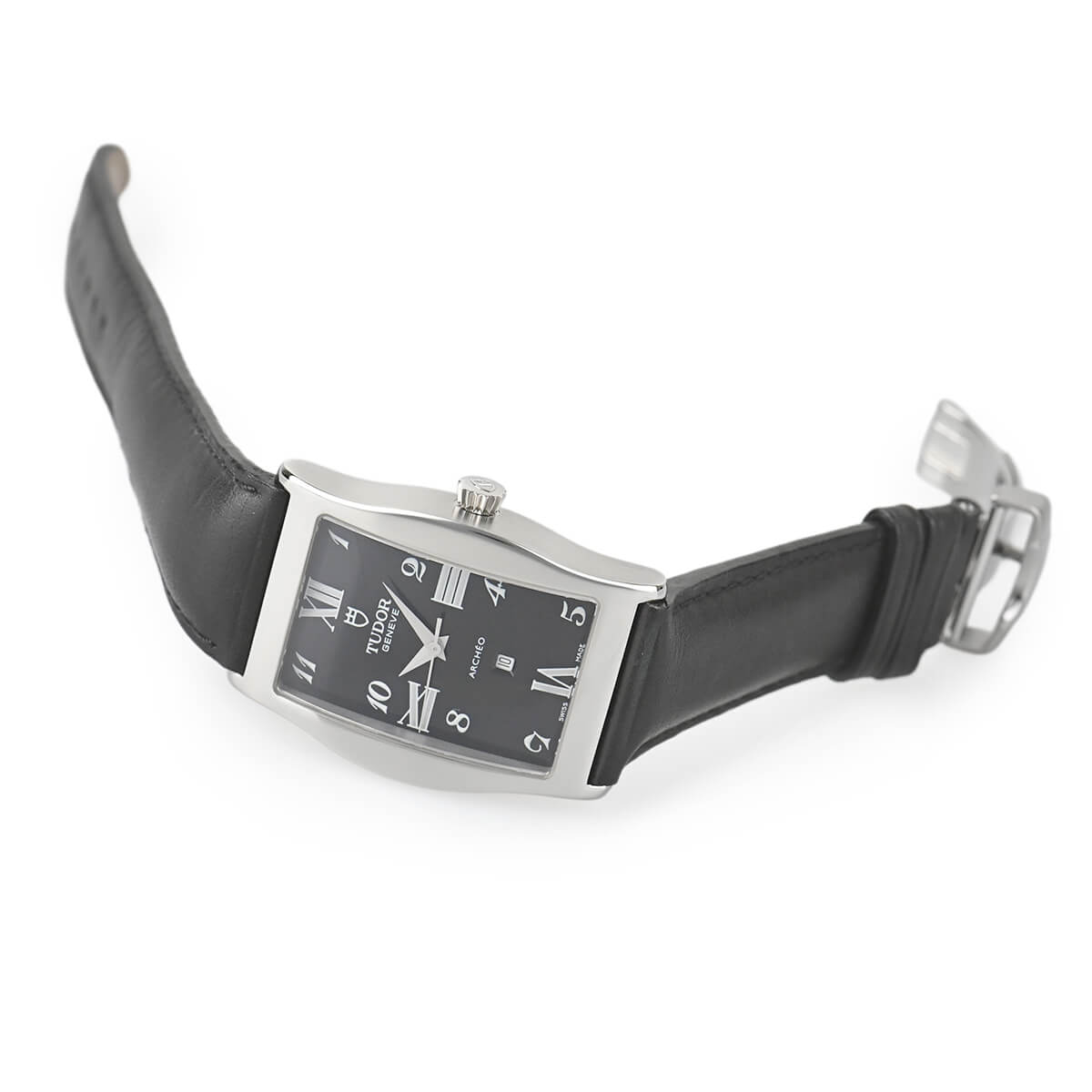 【30100】アルケオデイトが入荷しました。トノーケースとレクタンギュラーケースの組み合わせのようなデザインで現在のチューダーとはイメージが異なるユニークな日付表示付きの自動巻きモデルです。