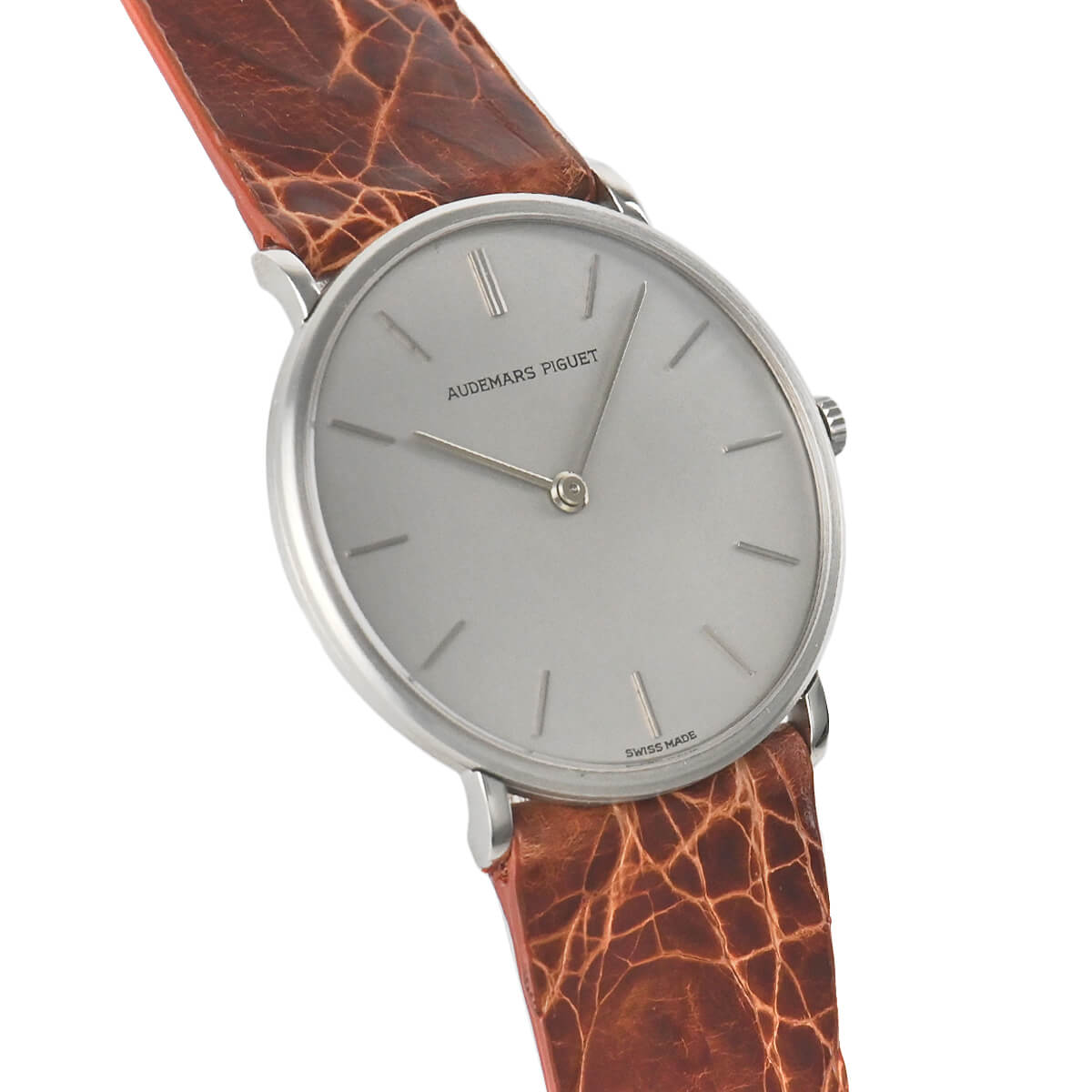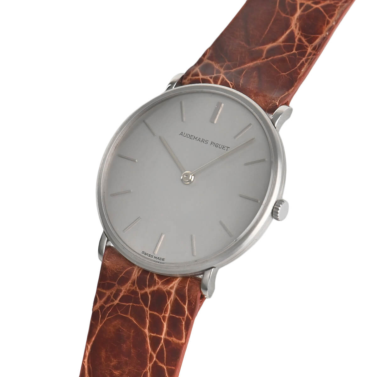 クラシカルでエレガントなスタイルのドレスウォッチ。ケースは珍しいプラチナ製です。