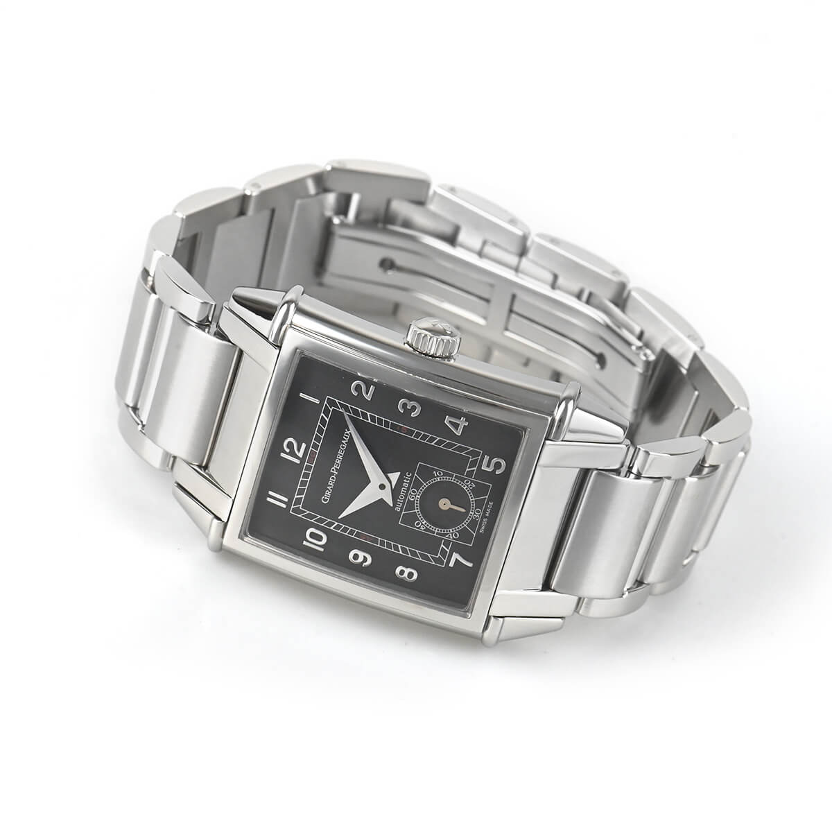 時計製造工芸の復活期である1945年、ジラール・ペルゴはアールデコからインスパイアされた丸みをおびたレクタンギュラー(長方形)ケースのモデルを製作しました。今回紹介する「ヴィンテージ1945」は、1995年にその復刻版として発売されたモデルです。