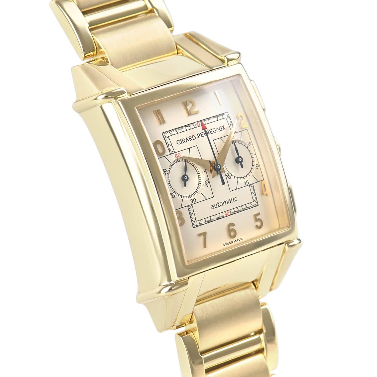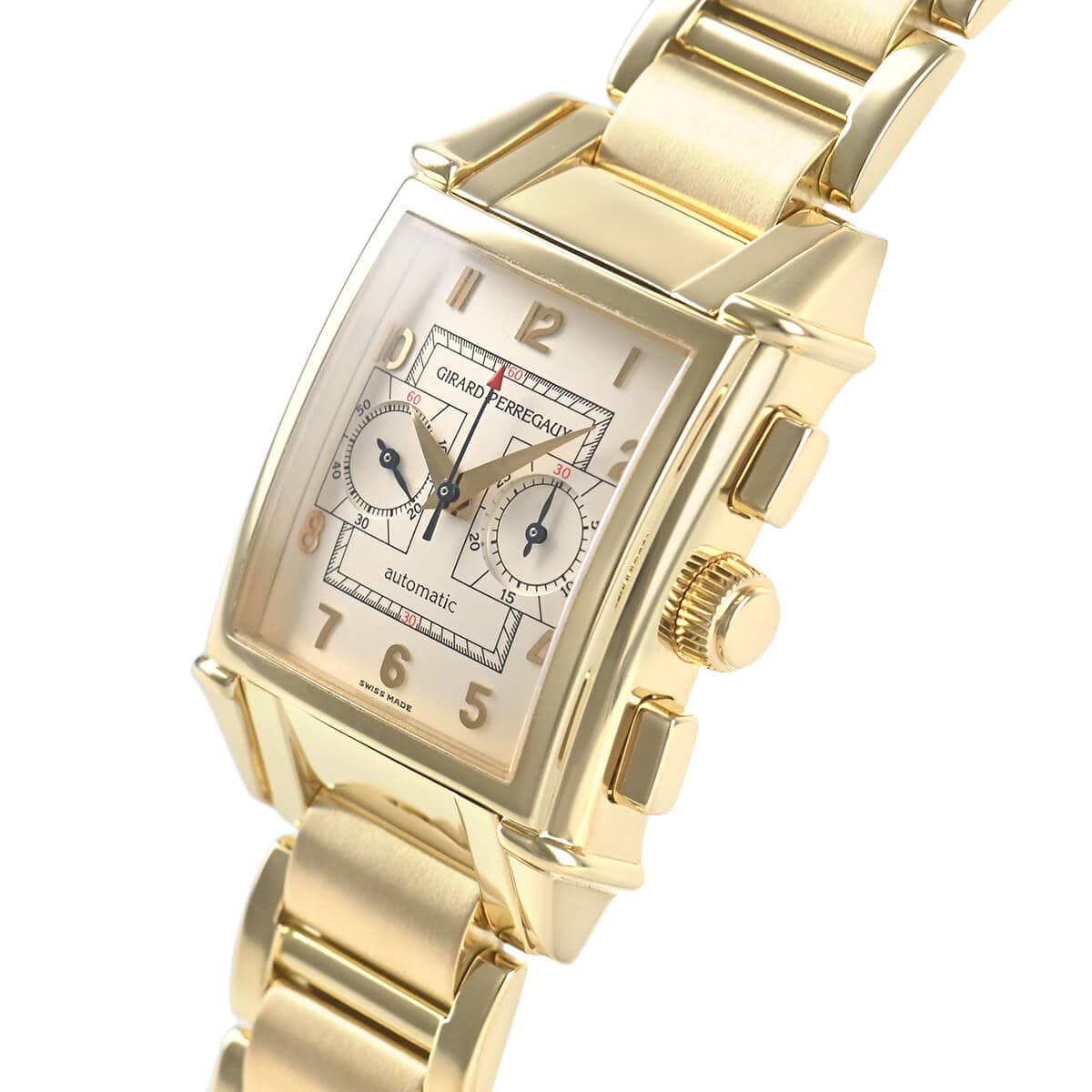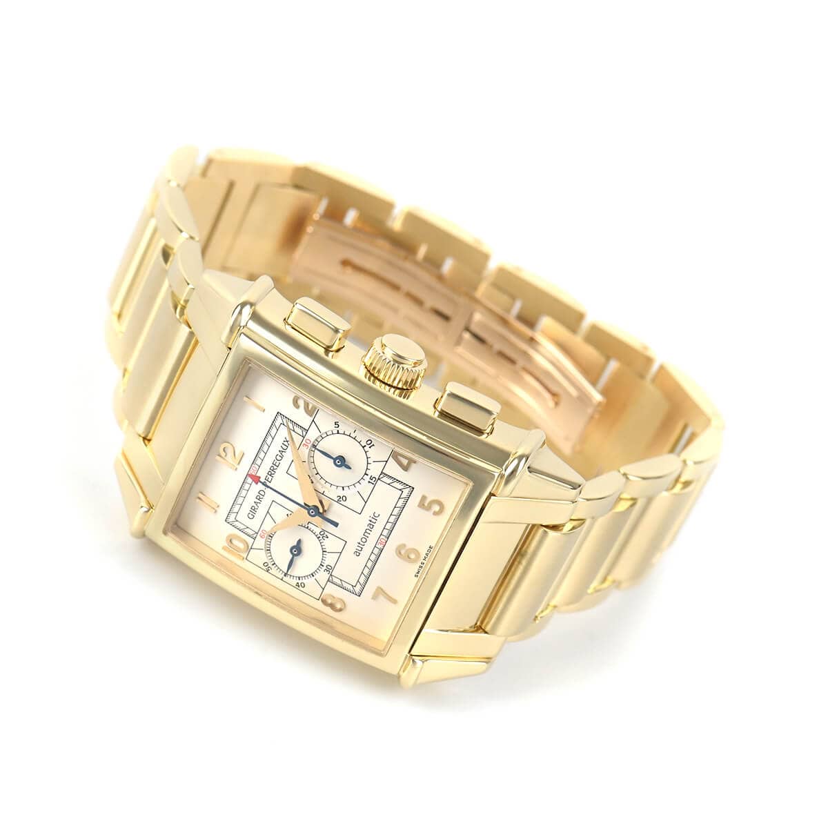 時計製造工芸の復活期である1945年、ジラール・ペルゴはアールデコからインスパイアされた丸みをおびたレクタンギュラー(長方形)ケースのモデルを創作しました。今回紹介する「ヴィンテージ1945」は、1995年にその復刻版としてデザインされたモデルです。