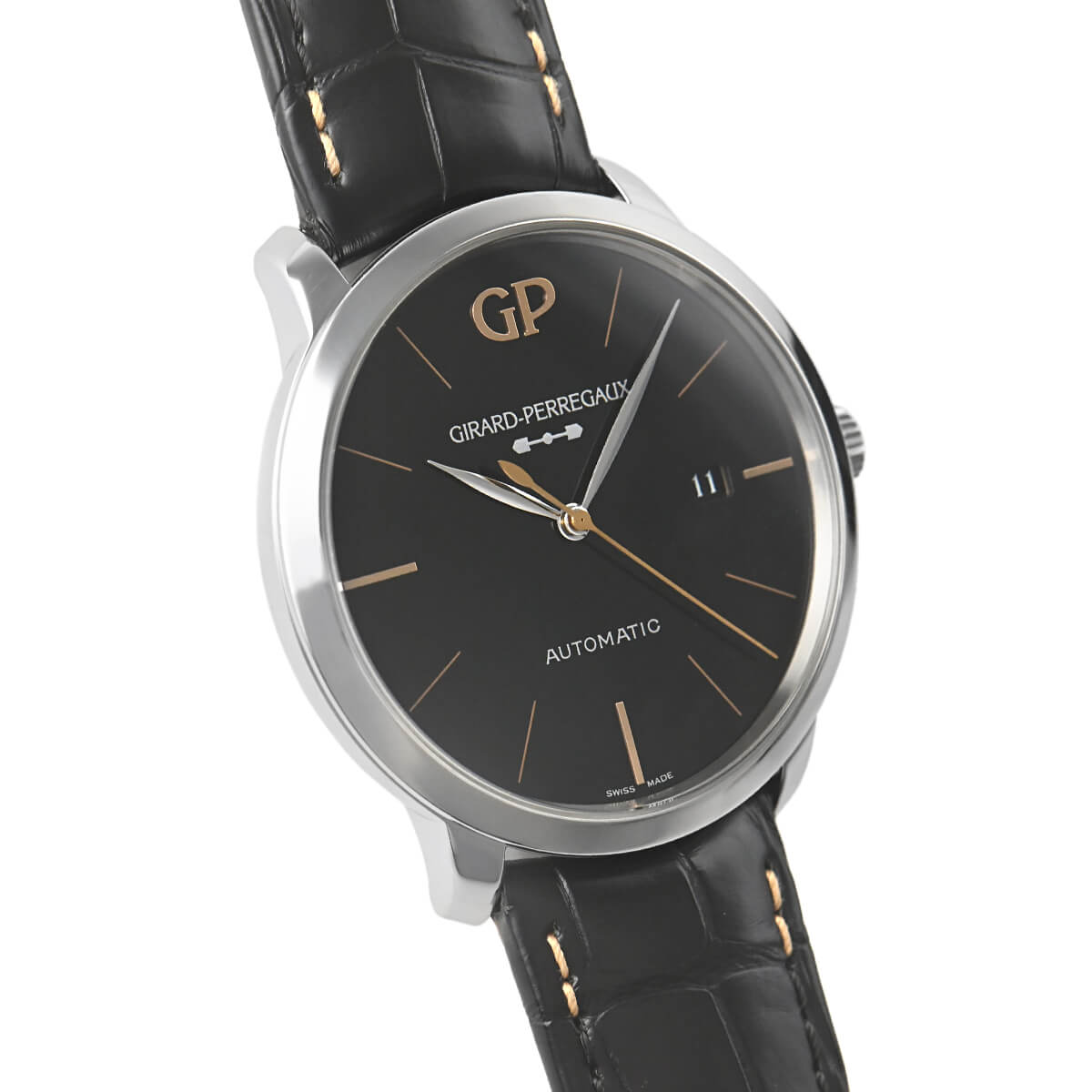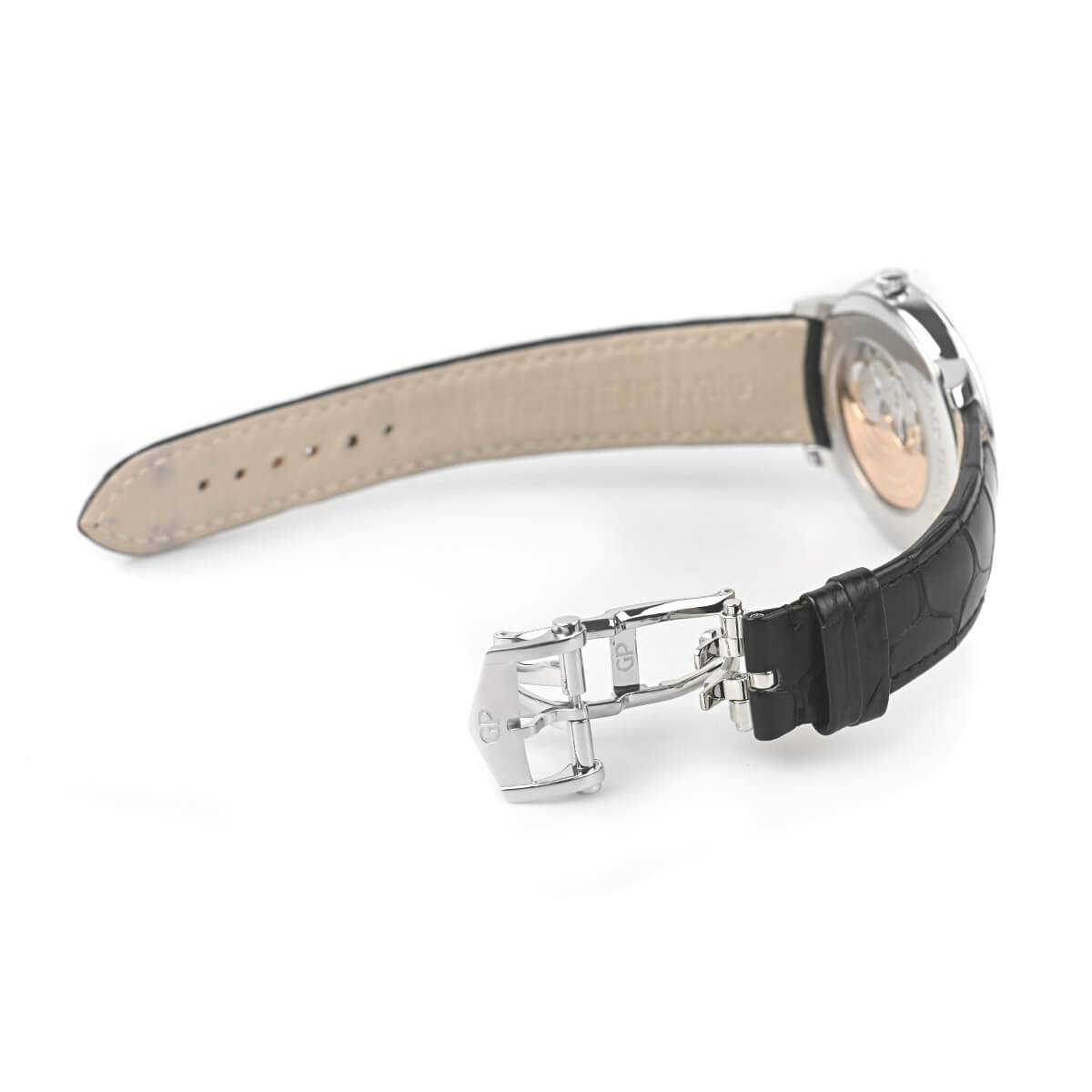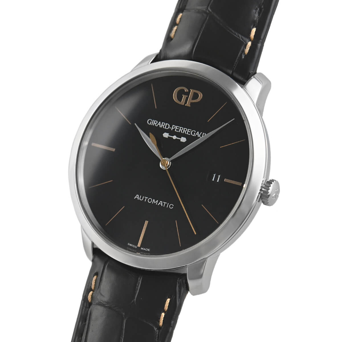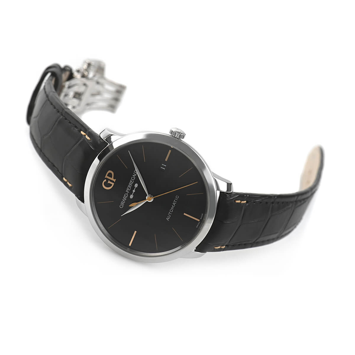 GPのロゴとアワーマーカーの一部にはピンクゴールドを使用したことにより、オニキスの黒さが引き立っています。