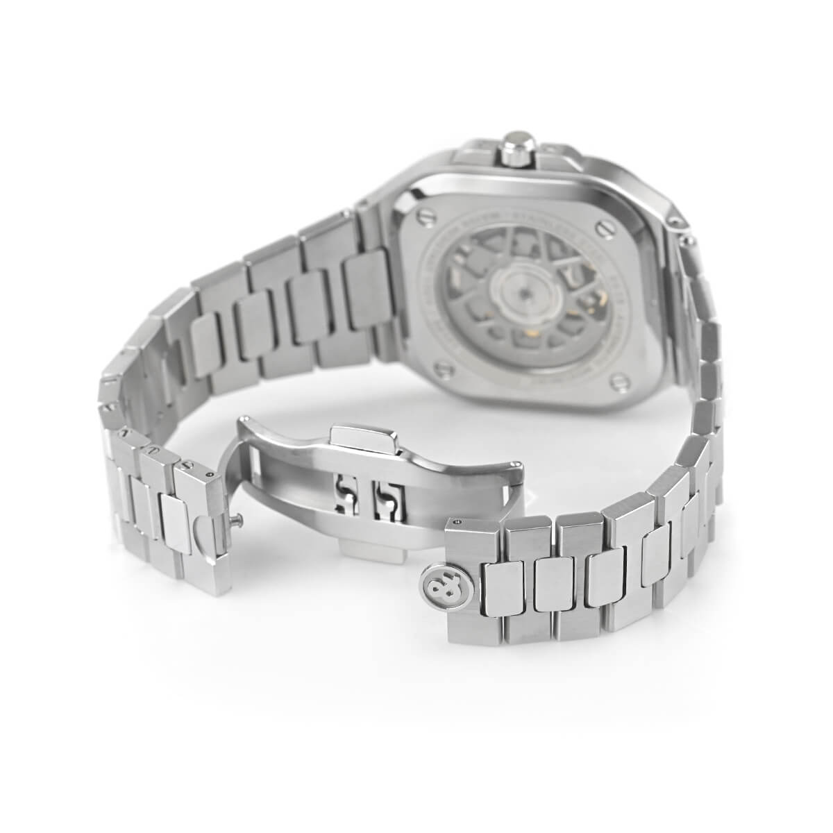 斬新な角型ケースが印象的なアビエーションウォッチのBR03をさらに進化させた【BR05】。BR05はBR03をより都会的で現代的なデザインに変えて、都市で生活する人に向けて作られた新たな計器です。角型ウォッチの弱点であるはずの防水性能は日常使いにも安心な100mを確保しています。