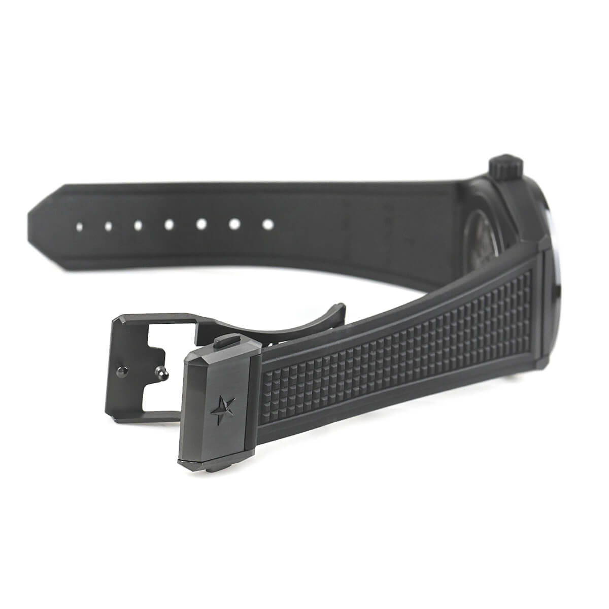 また、デファイならではの力強いフォルムのケースから流れるように一体化したラバーストラップはスポーティな印象で着け心地も良好です。