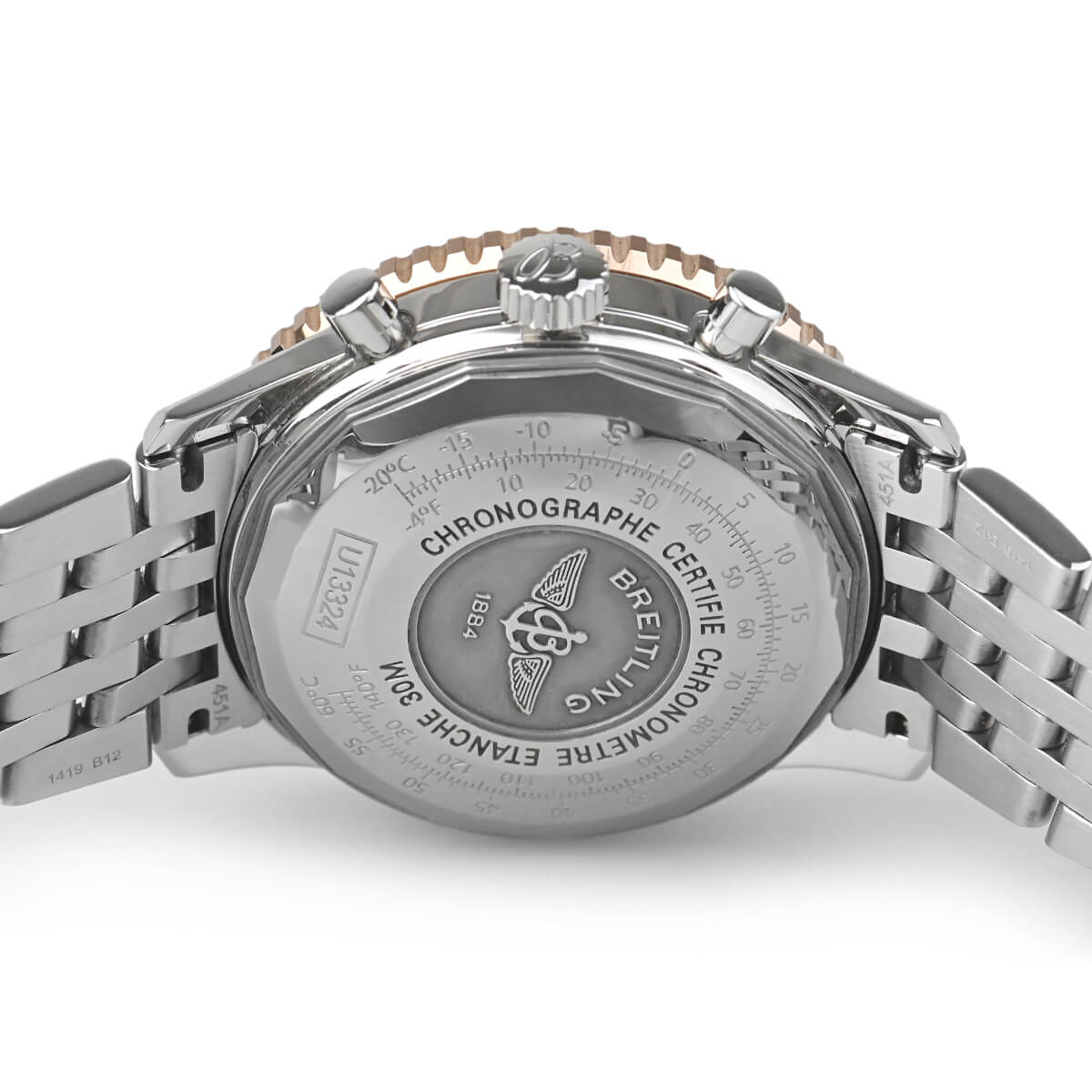 ムーブメントにはCOSC公認クロノメーター、42時間パワーリザーブの「ブライトリング13」を搭載。