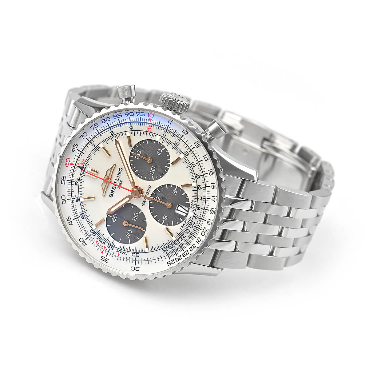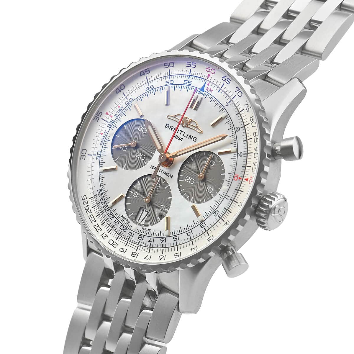 ブライトリングの看板モデル「ナビタイマー」に自社製クロノグラフムーブメントのB01を搭載した【ナビタイマー B01 クロノグラフ41】。こちらは日本限定モデル。