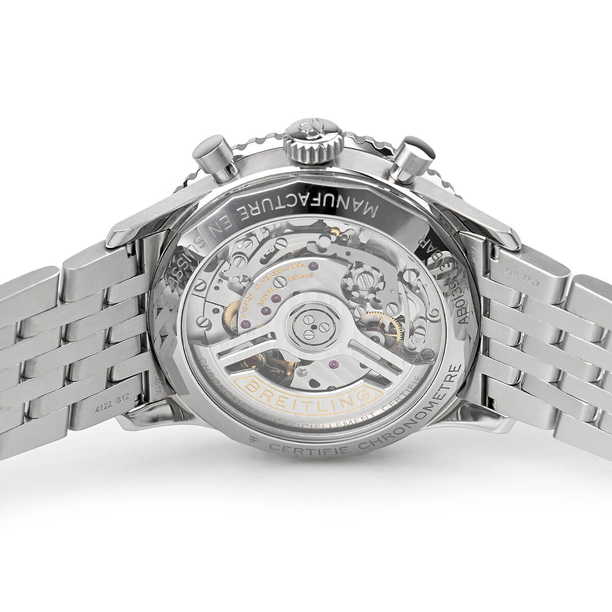 裏蓋はシースルーバックとなっていますので、COSC認定のクロノメーターキャリバーB01の動きもお楽しみ頂けます。