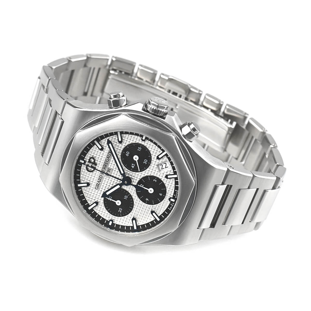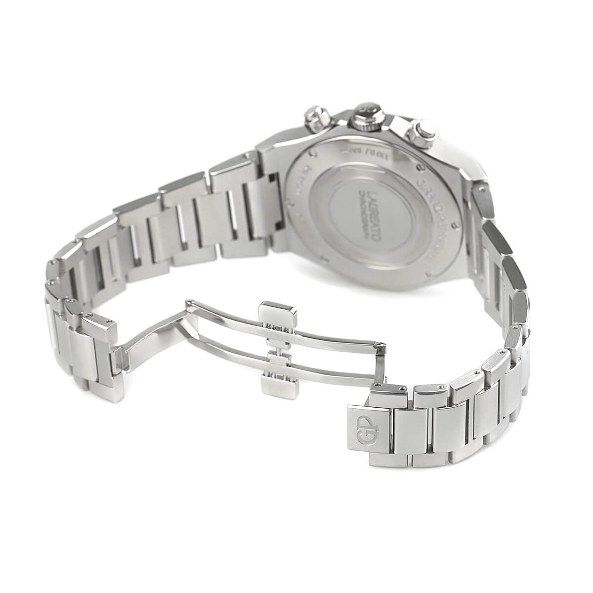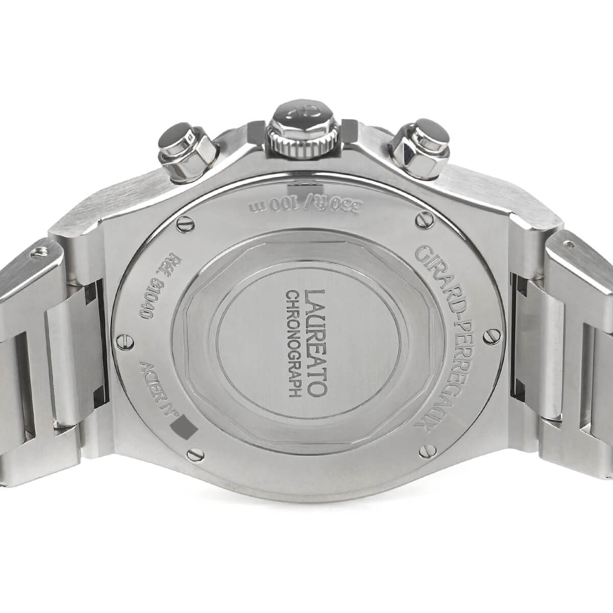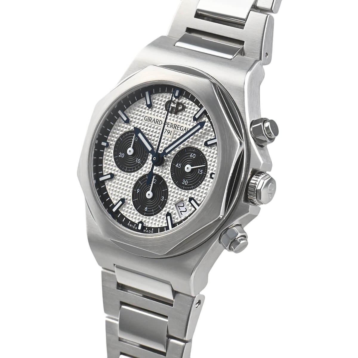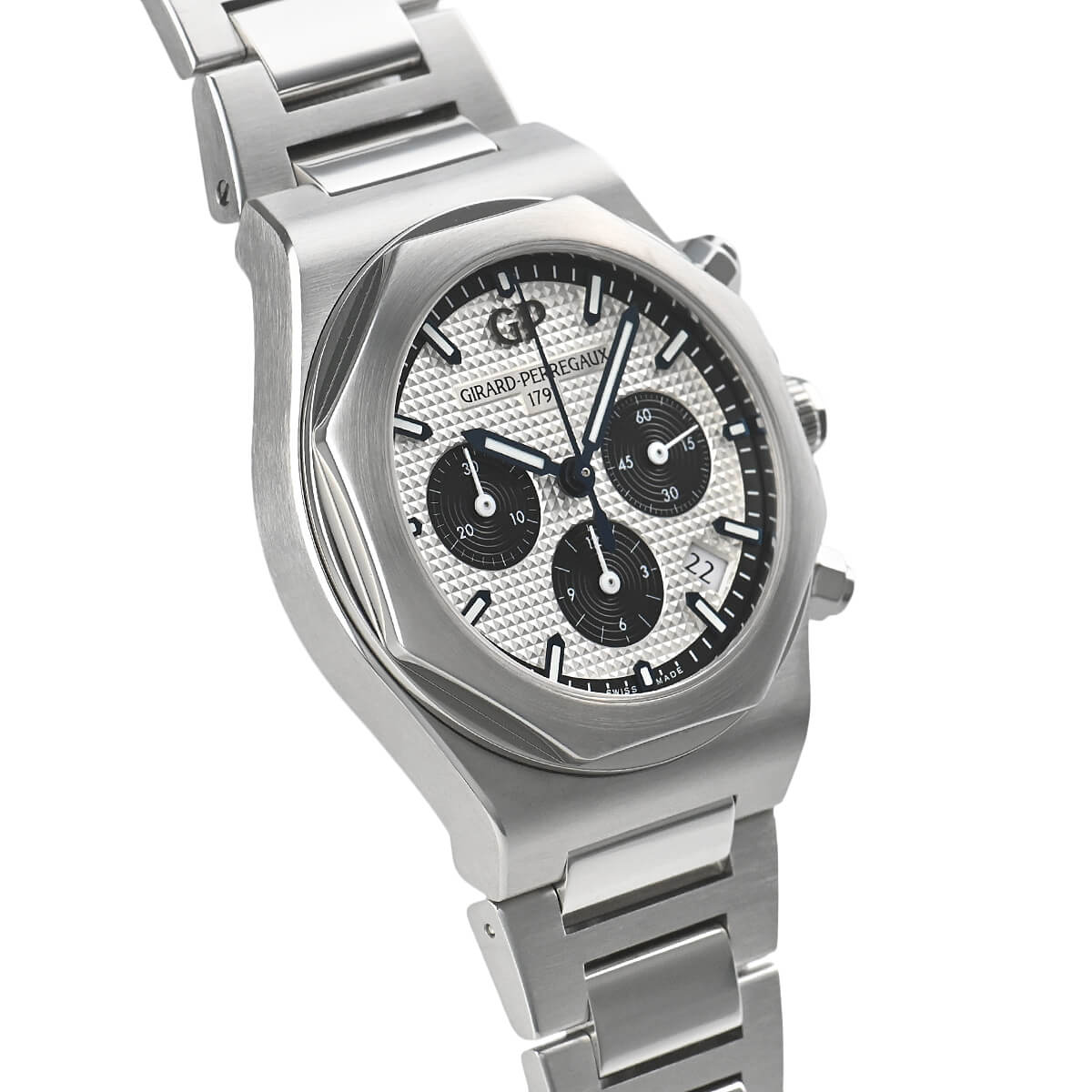 ロレアートの歴史は1975年まで遡り、数あるジラール・ペルゴの時計の中でも歴史的でスポーツエレガンスを体現するモデルです。グレー/ブラックカラーの文字盤には一つ一つが小さなピラミッド型を成すクル・ド・パリ装飾が施されていて、46時間パワーリザーブの自社製クロノグラフキャリバーGP03300-0135が搭載されています。