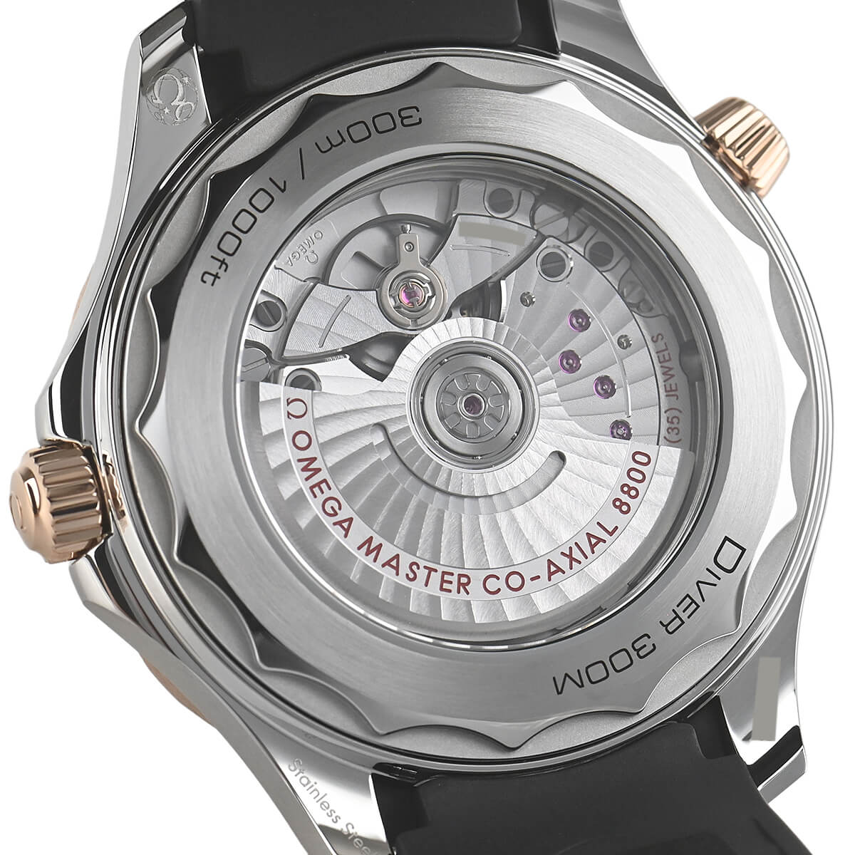 サファイアケースバックから覗くムーブメントには、15000ガウス以上の耐磁性能を持ち、スイス連邦計量・認定局(METAS)が認定したマスタークロノメーターのキャリバー8800を搭載します。