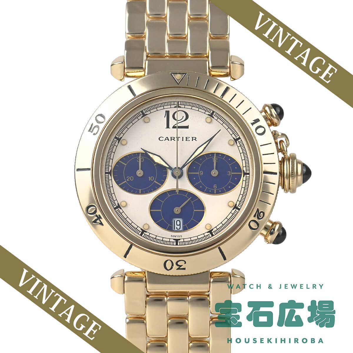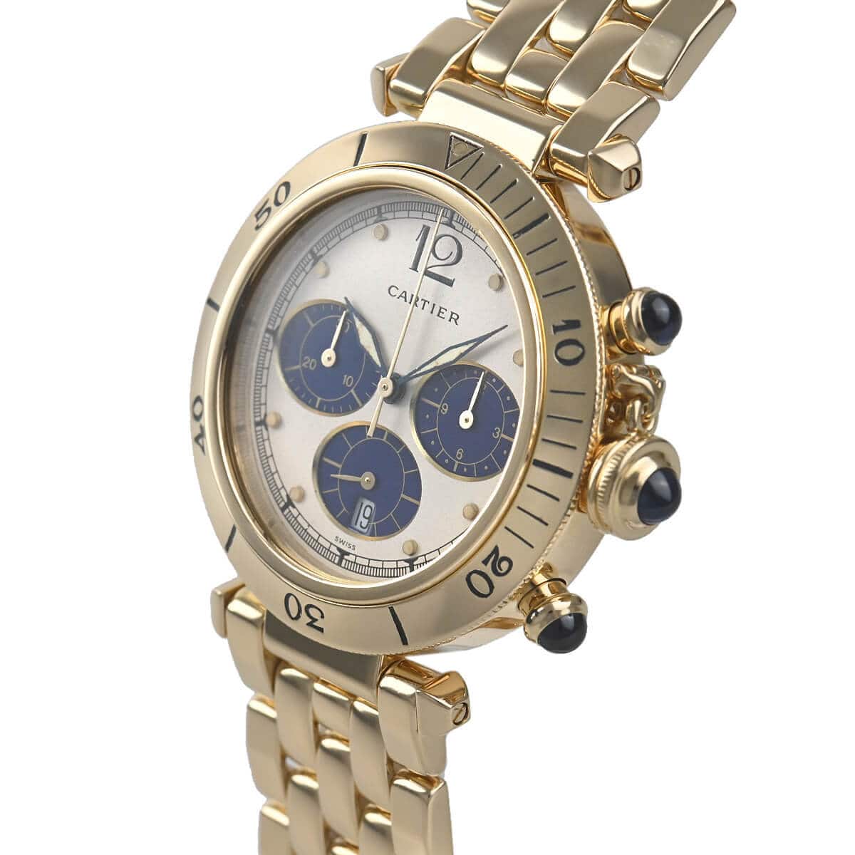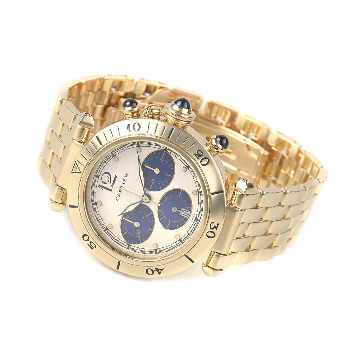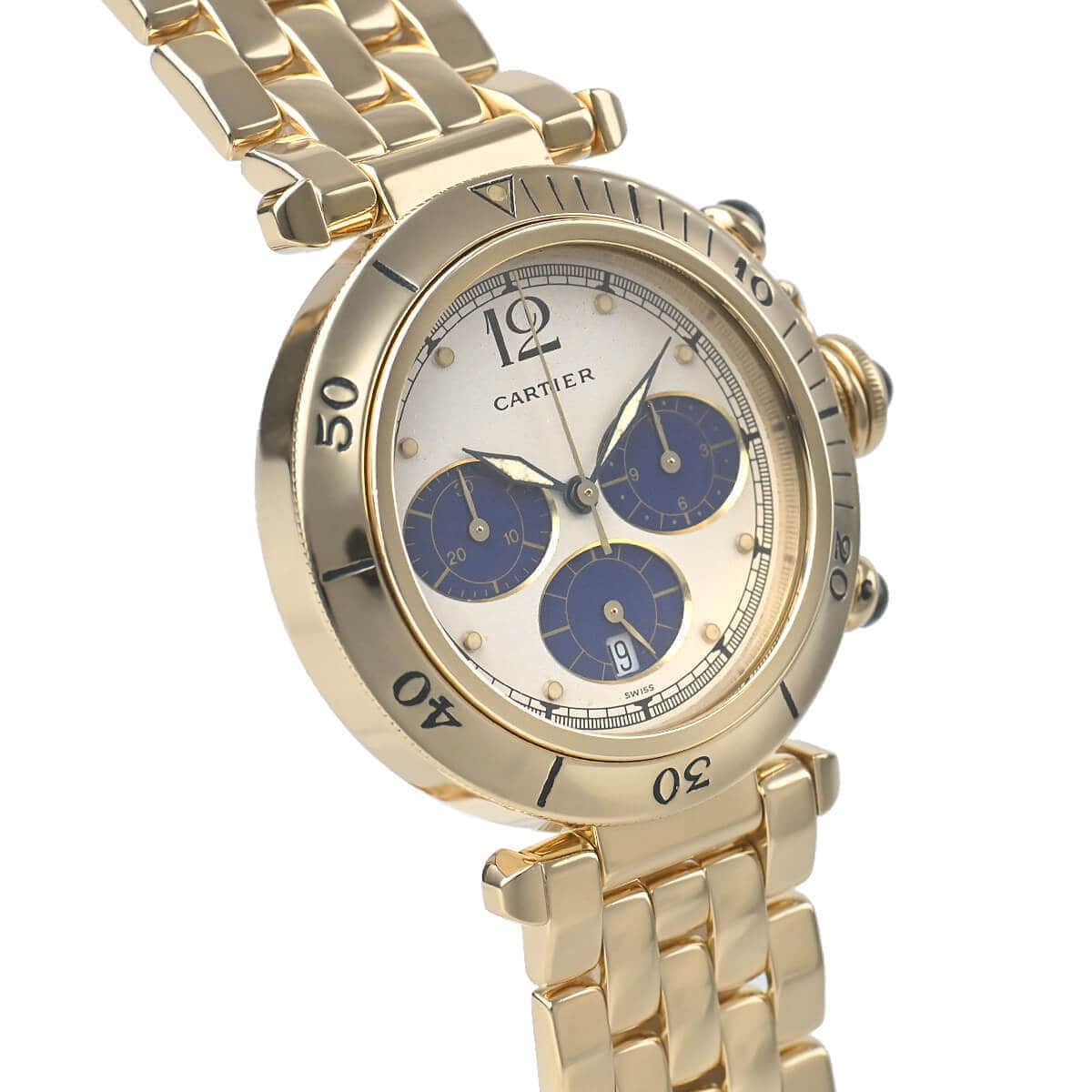 カルティエの定番人気モデル『パシャ』。こちらは珍しい38mmシリーズのクロノグラフモデルです。