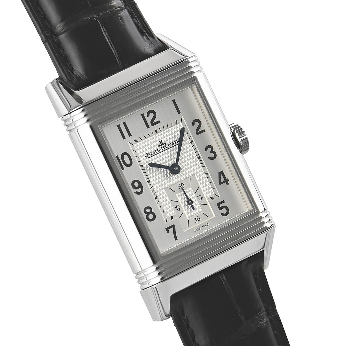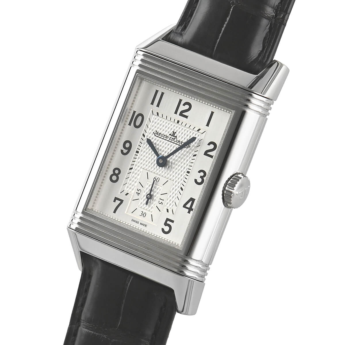 角型時計の代名詞であるレベルソのメンズモデル。反転するケースを巧に活かして、表と裏側で全く表情の異なるデザインにしてあります。
