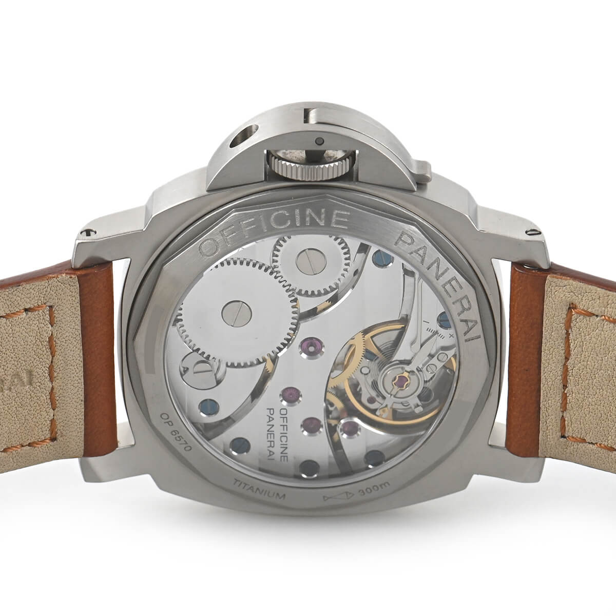 I番“2006年製”【PAM00176】ルミノールベースが入荷しました。チタンケースはステンレスに比べ軽く、シンプルなデザインから様々なシーンで合わせやすいのが特徴です。シースルーバックになっていますのでムーブメントを観賞することができます。