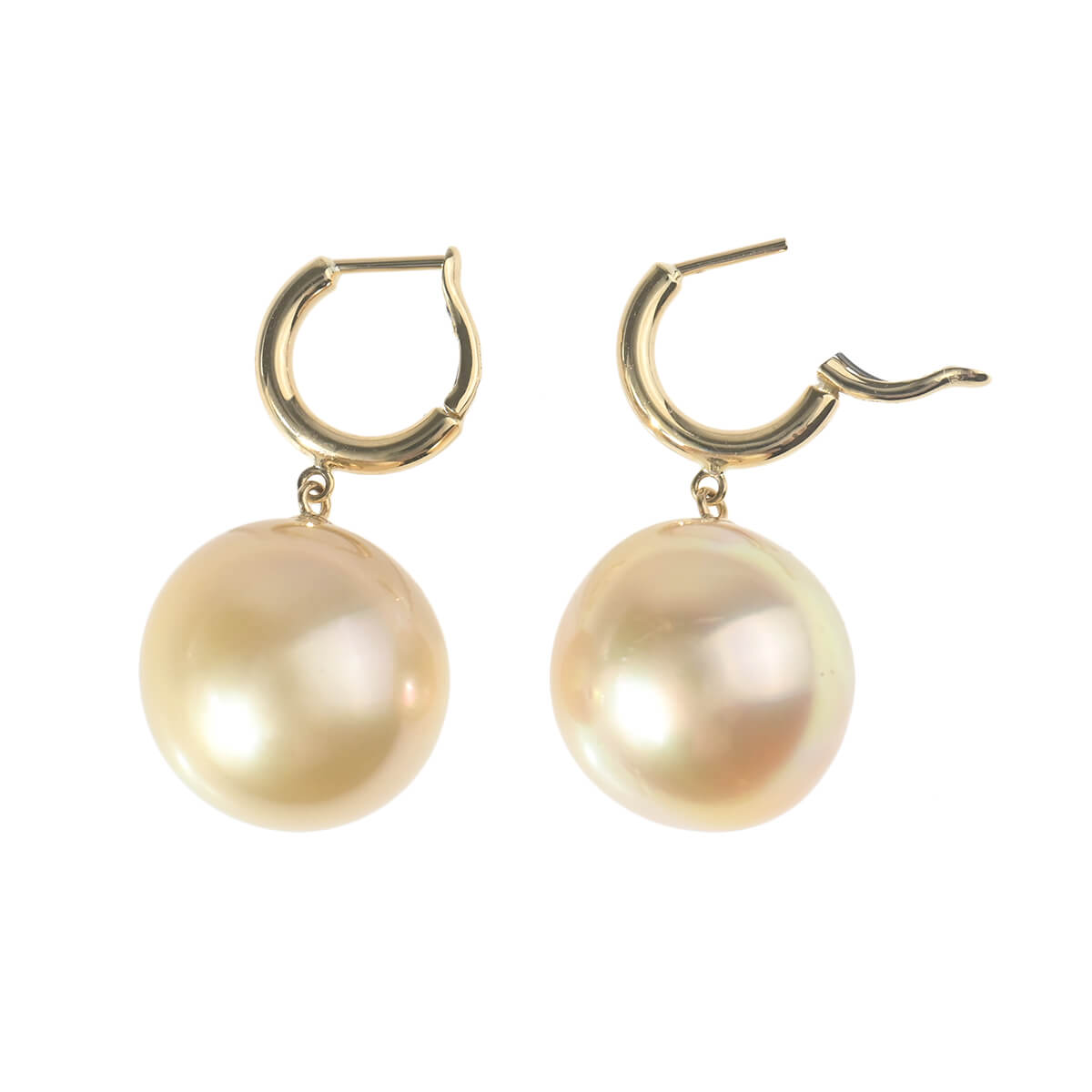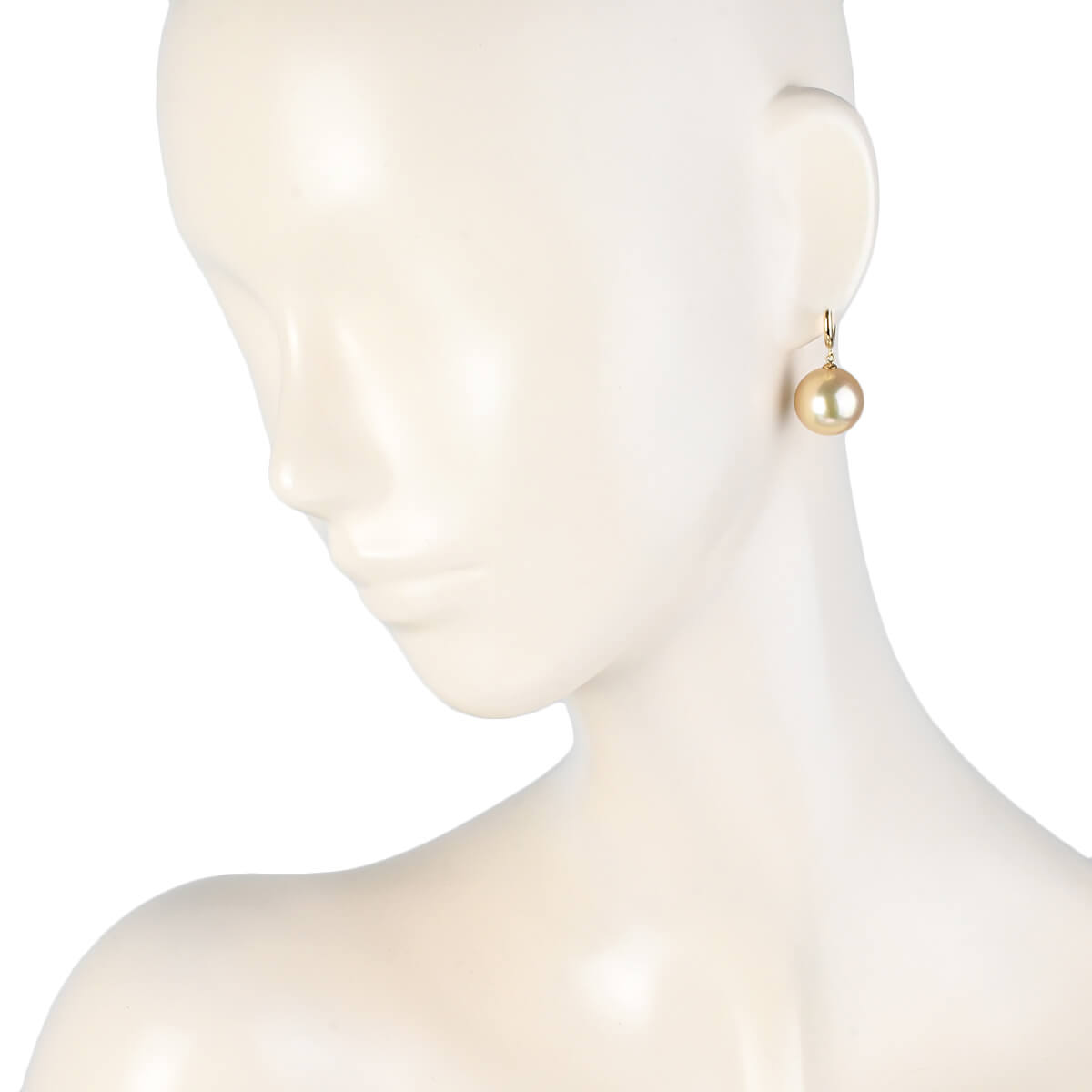 約16mmと大粒のゴールデンパールをゴールドフープにあしらった、イエローゴールド製ドロップピアス。ゴージャスな存在感を醸しつつ優しく艶やかに輝くゴールデンパールが、さりげない仕草でも揺れてフェイスラインを彩ります。素材の美しさが際立つシンプルなデザインは、どんなスタイリングにも優美な品の良さを添えてくれそう。上質なパールジュエリーは和装にはもちろん、お洒落な大人カジュアルでのコーディネートも素敵です。