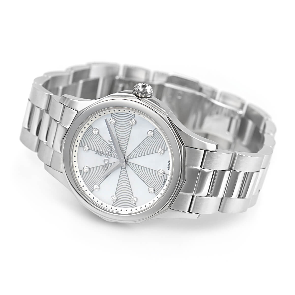 文字盤にはフェミニンで優雅な印象のホワイト・マザーオブパールを使用しています。