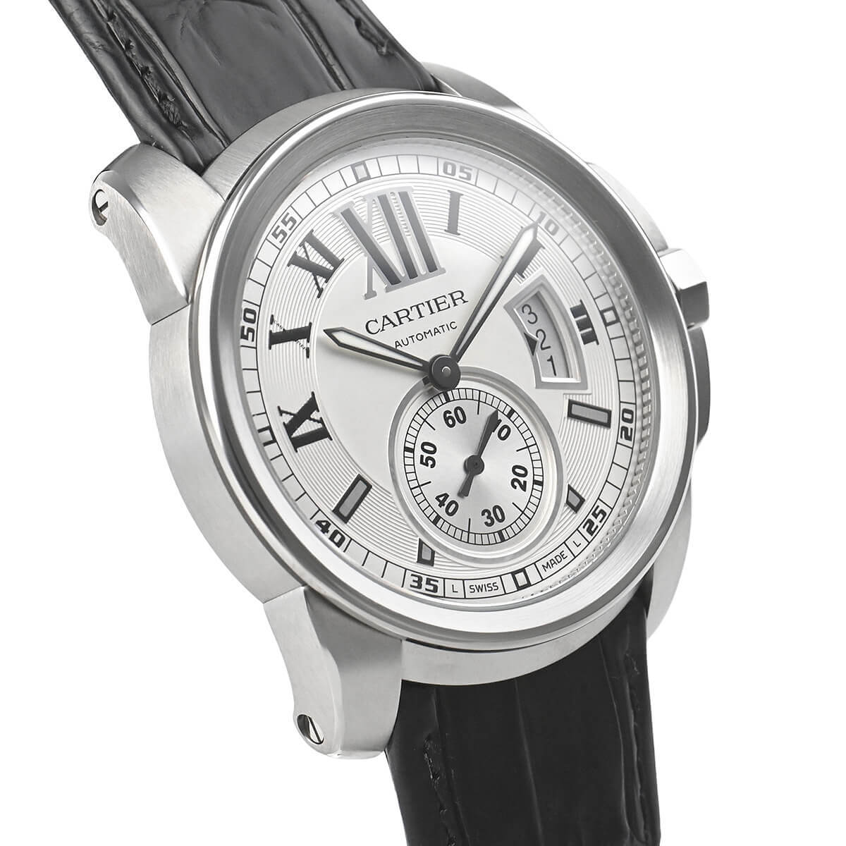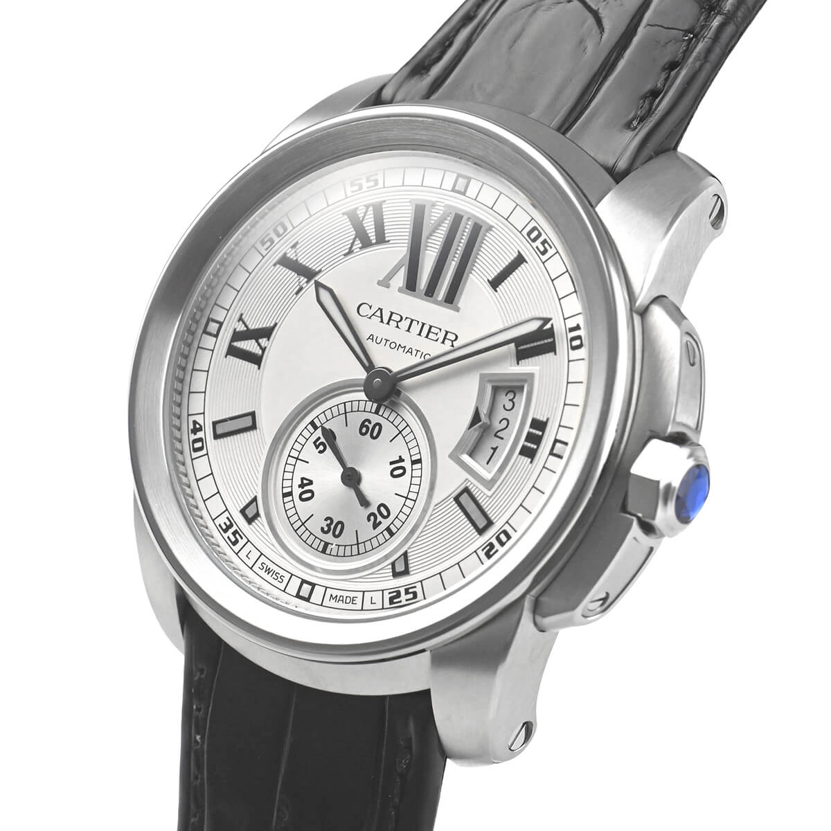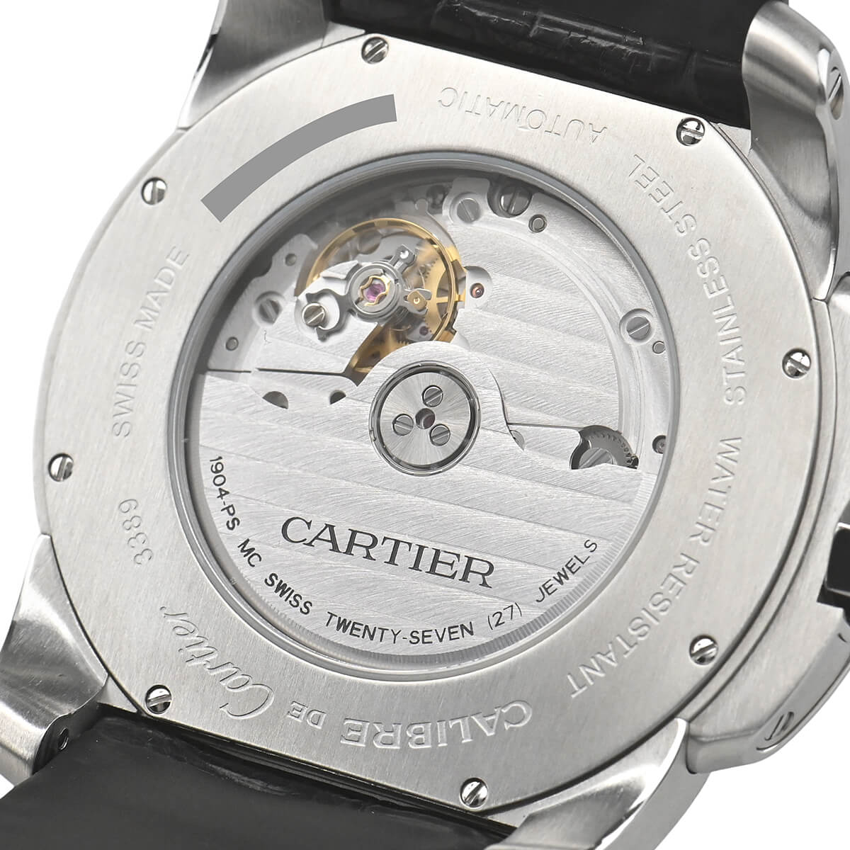 カルティエ初の“メンズ専用”コレクション「カリブル」。ラグとリューズガードの存在感が男性用コレクションらしい力強さを感じさせます。搭載するキャリバーは自社にて開発し製造も行っており、「カリブル」という名称はここから由来したものです。