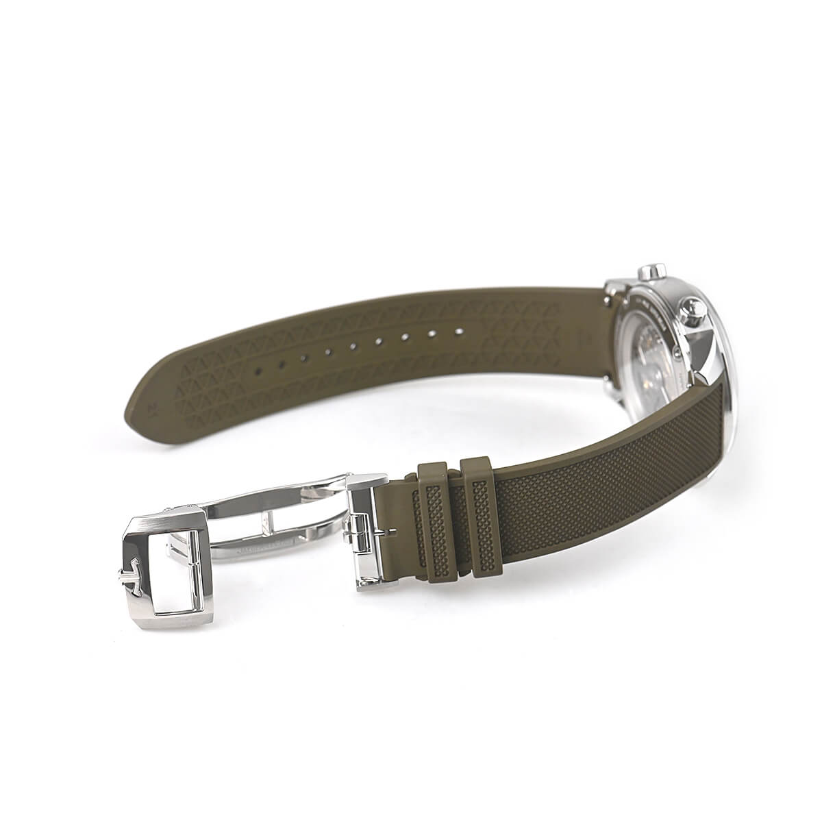 こちらの【ポラリス デイト】は、アラーム機能は付いていませんが、防水性能は20気圧を確保したインナーベゼル式のダイバーウォッチ。