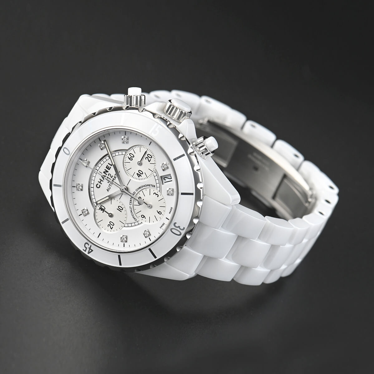 セラミックの独自の雰囲気で大ヒットしている「J12」。こちらは自動巻きムーブメントを採用したクロノグラフモデル。
