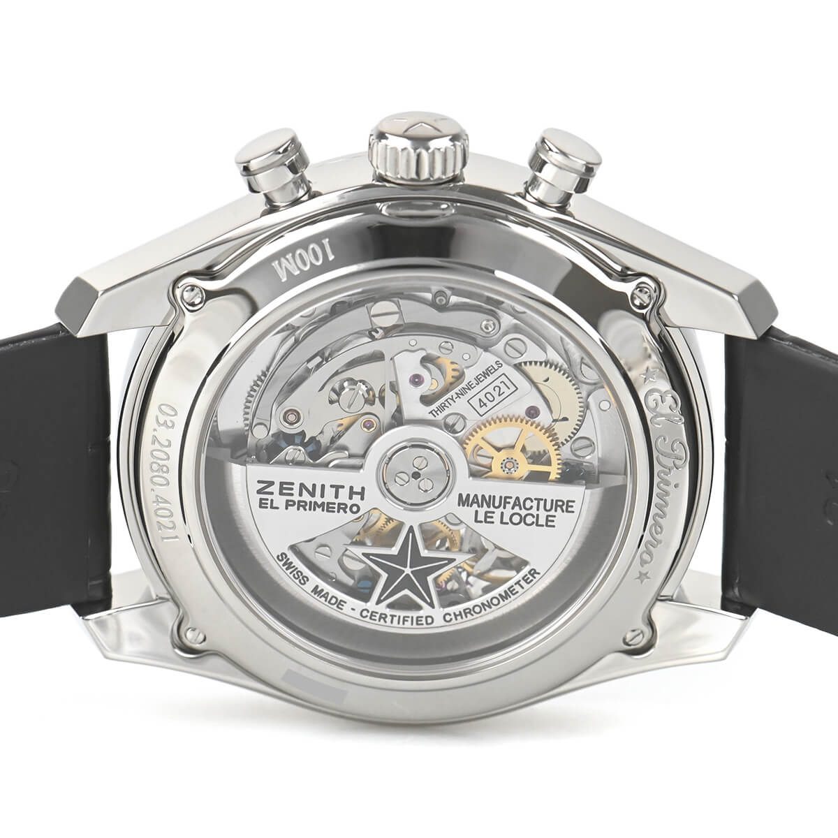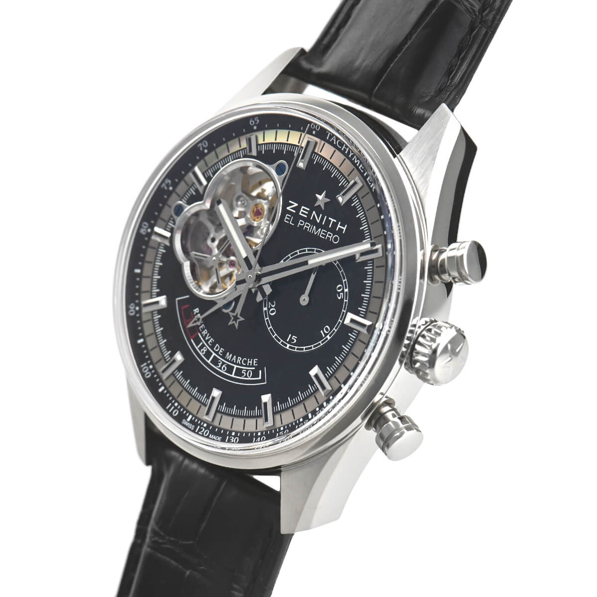 ゼニスの象徴のスターがクロノ針にデザインされているのが面白いですね。