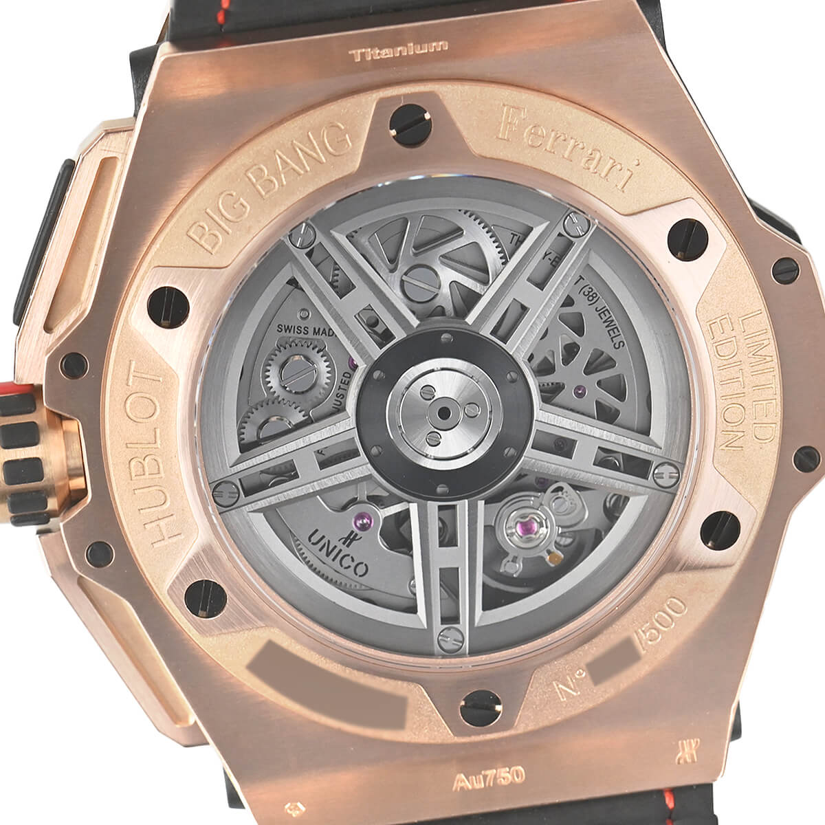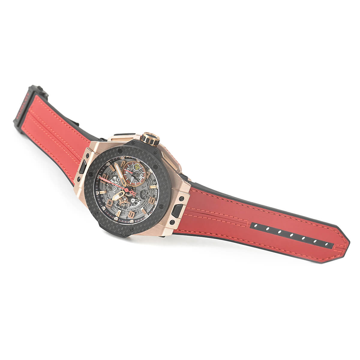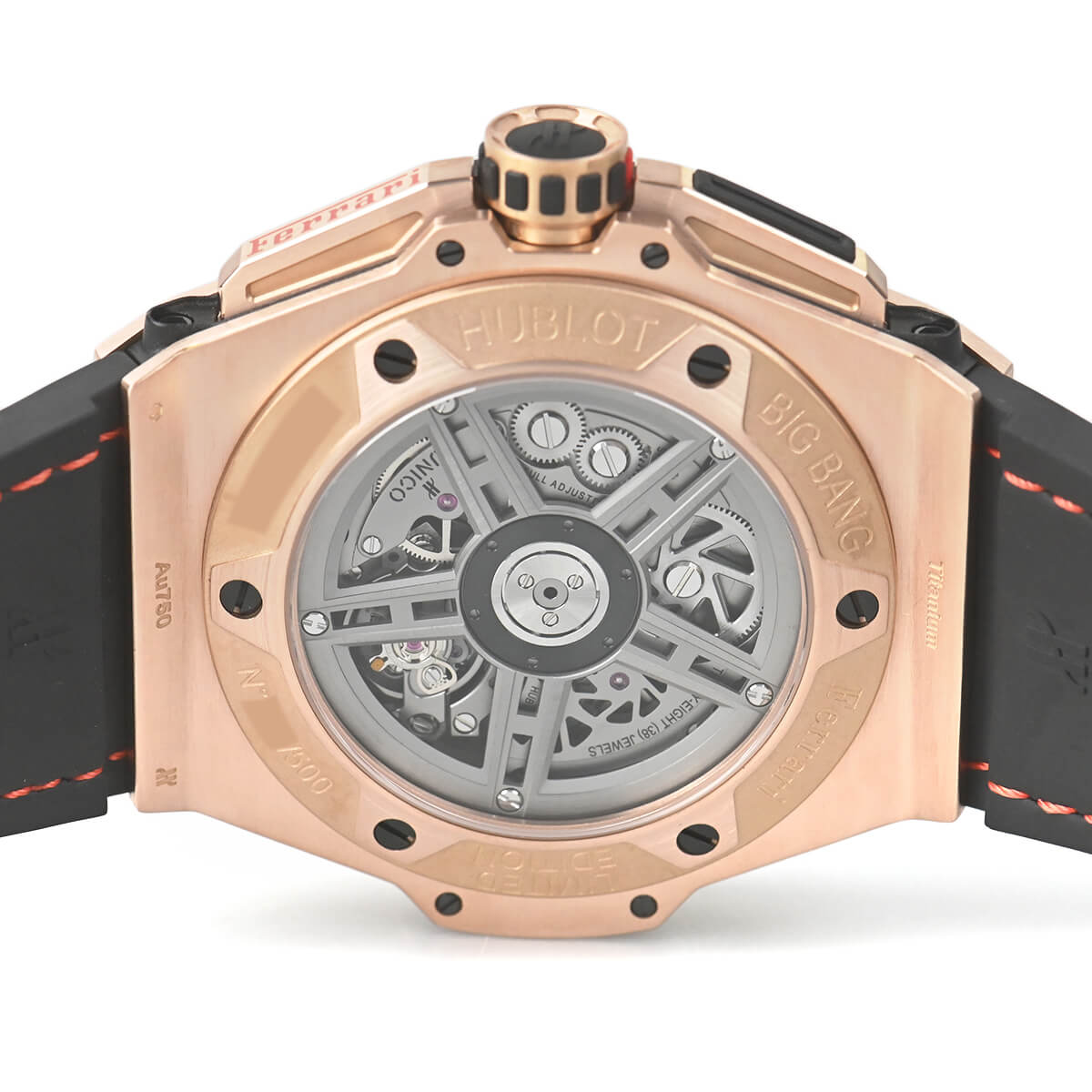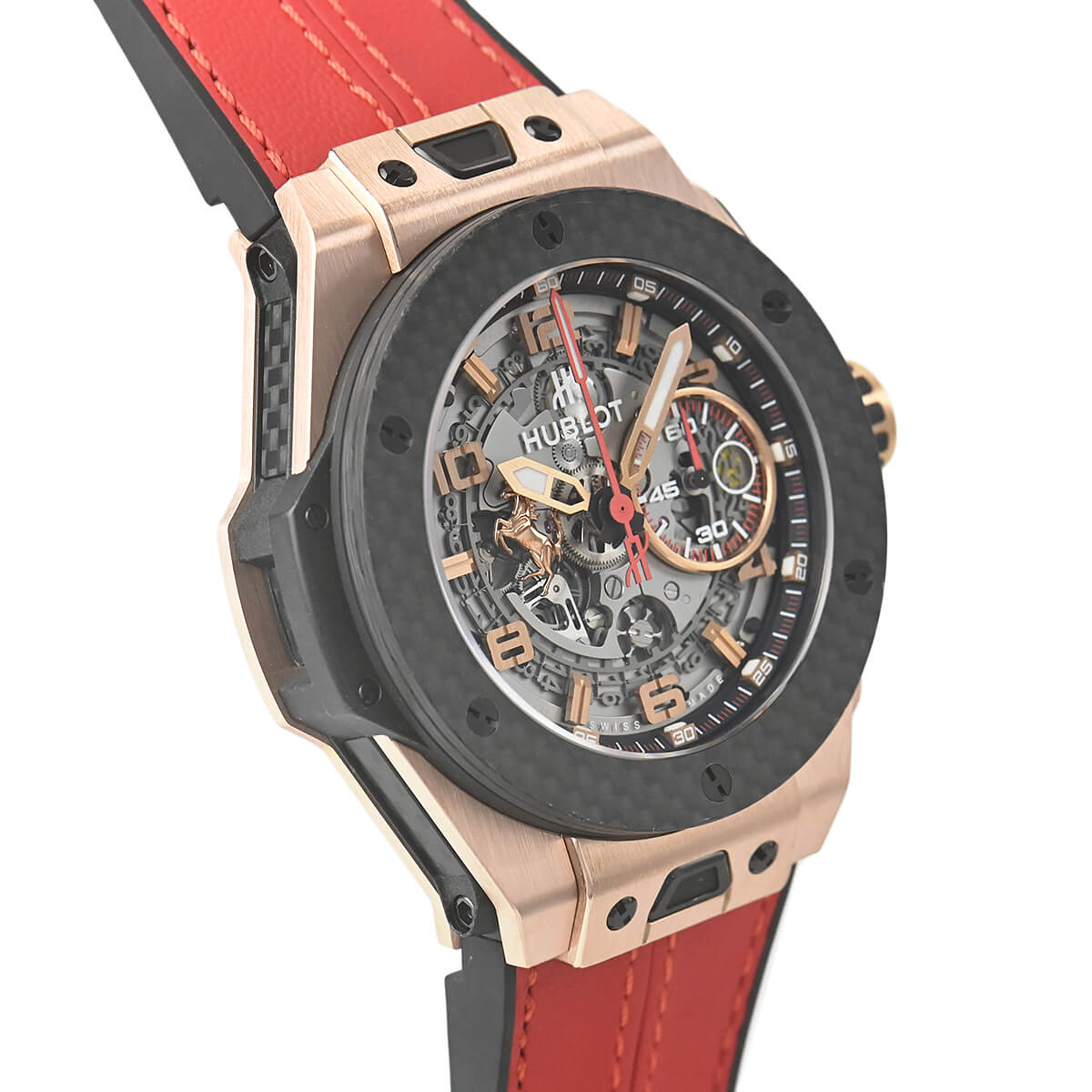 2013年度のウブロとフェラーリのパートナーシップモデルの「ビッグバン フェラーリ」が入荷しました。フェラーリの象徴である跳ね馬のレリーフを9時位置に刻印。