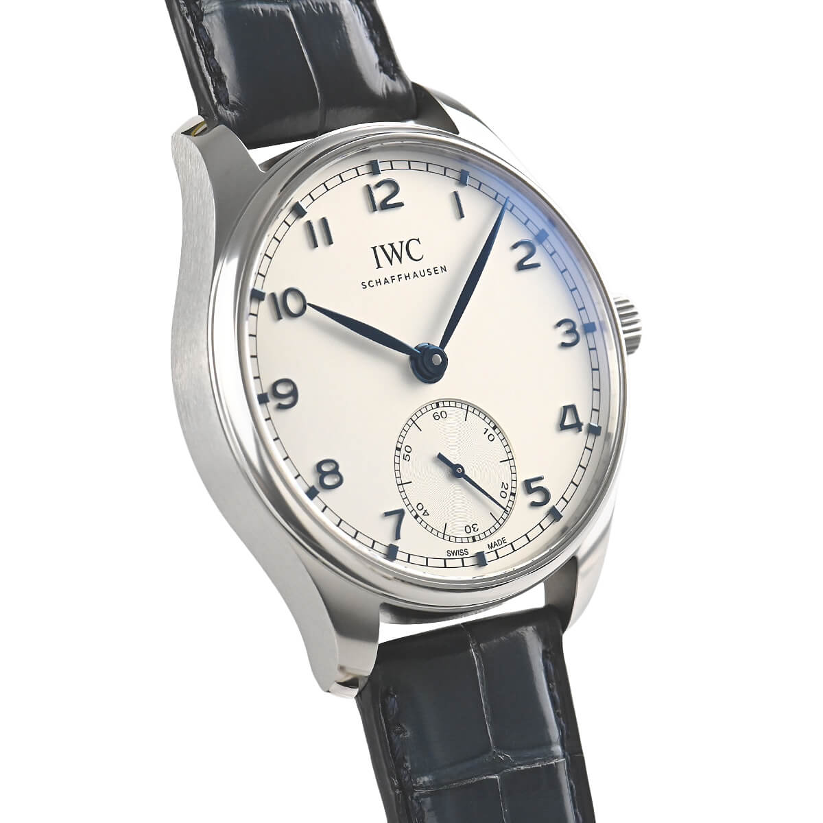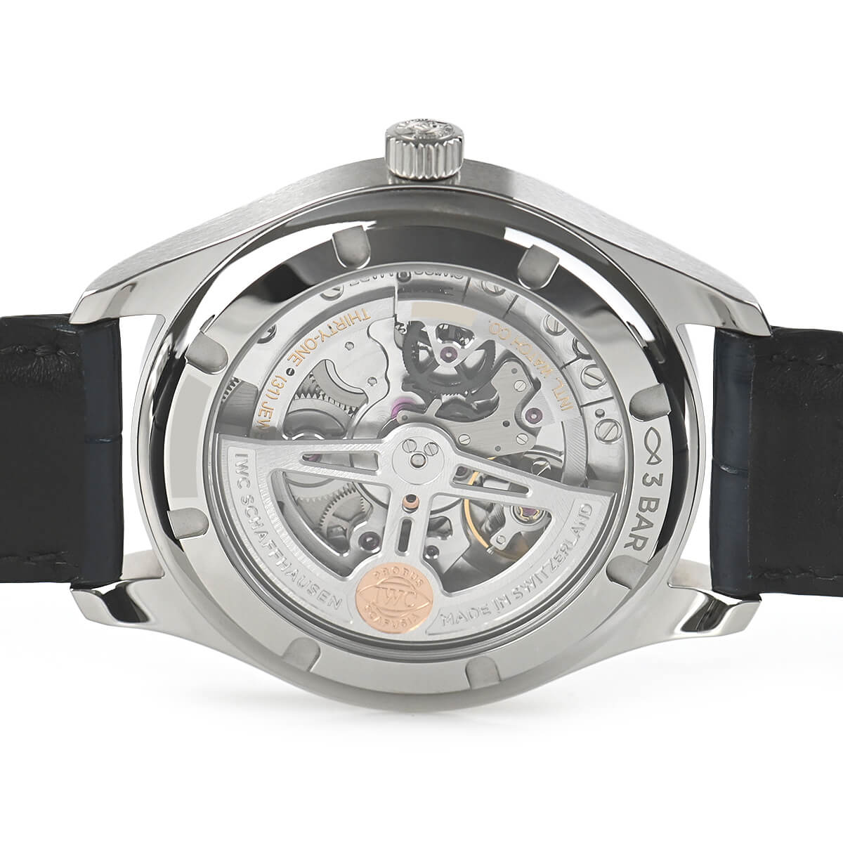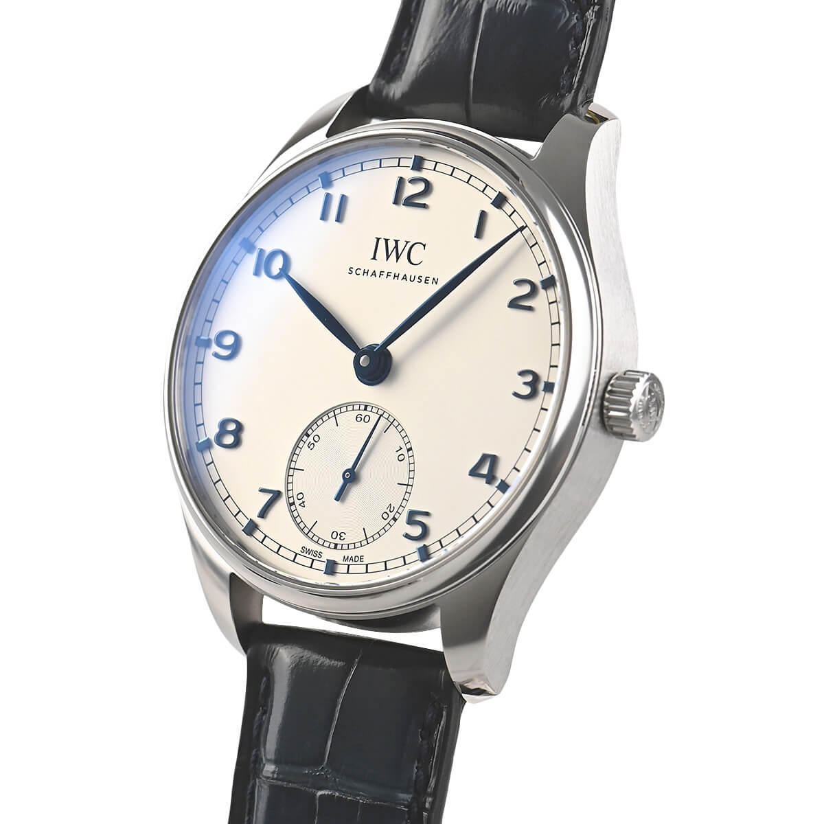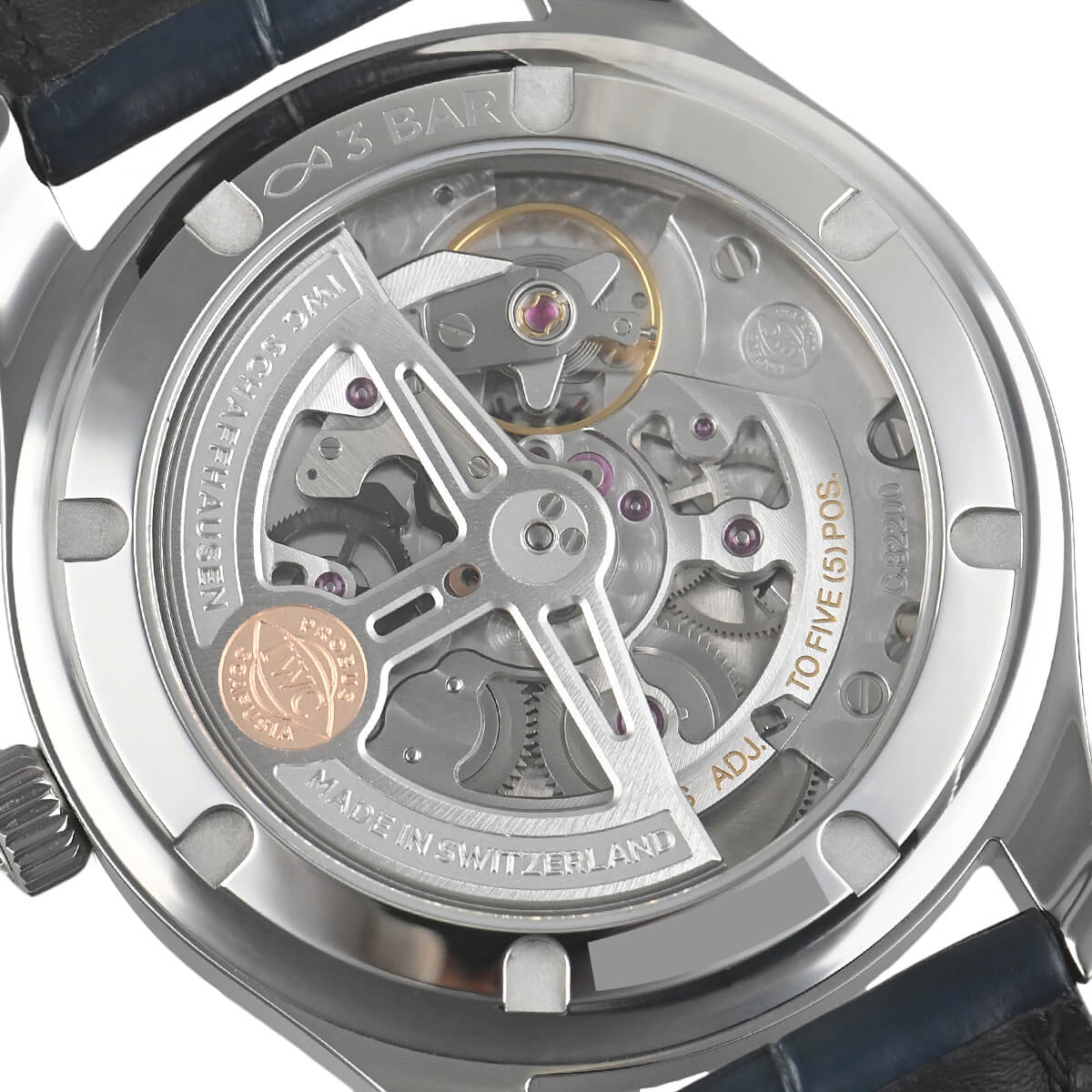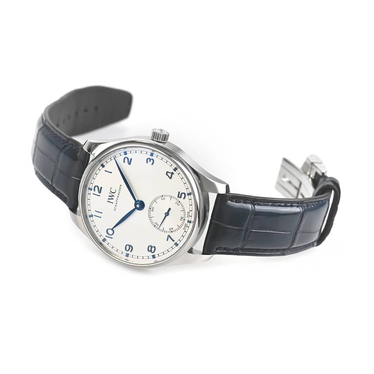 【ポルトギーゼ オートマティック40】は、耐摩耗性に優れたセラミックパーツをペラトン自動巻き機構に採用した60時間パワーリザーブの自社製自動巻きキャリバー82200を搭載。文字盤外周のレイルウェイ分目盛りと6時位置に配されたスモールセコンドは1930年代末に誕生したポルトギーゼコレクションの歴史の中で継承されてきたデザイン様式です。