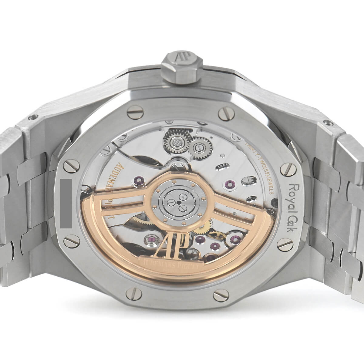 ムーブメントには、15400STが21600振動で60時間パワーリザーブの「キャリバー3120」を搭載していたのに対して、15500STは28800振動で70時間パワーリザーブの「キャリバー4302」に変更されました。