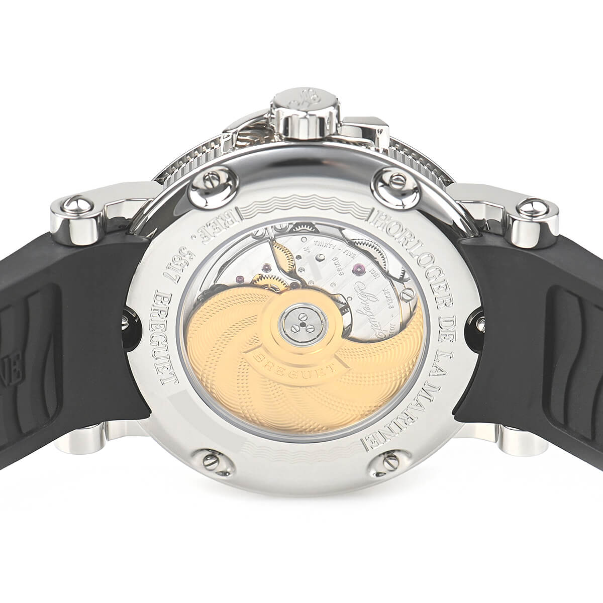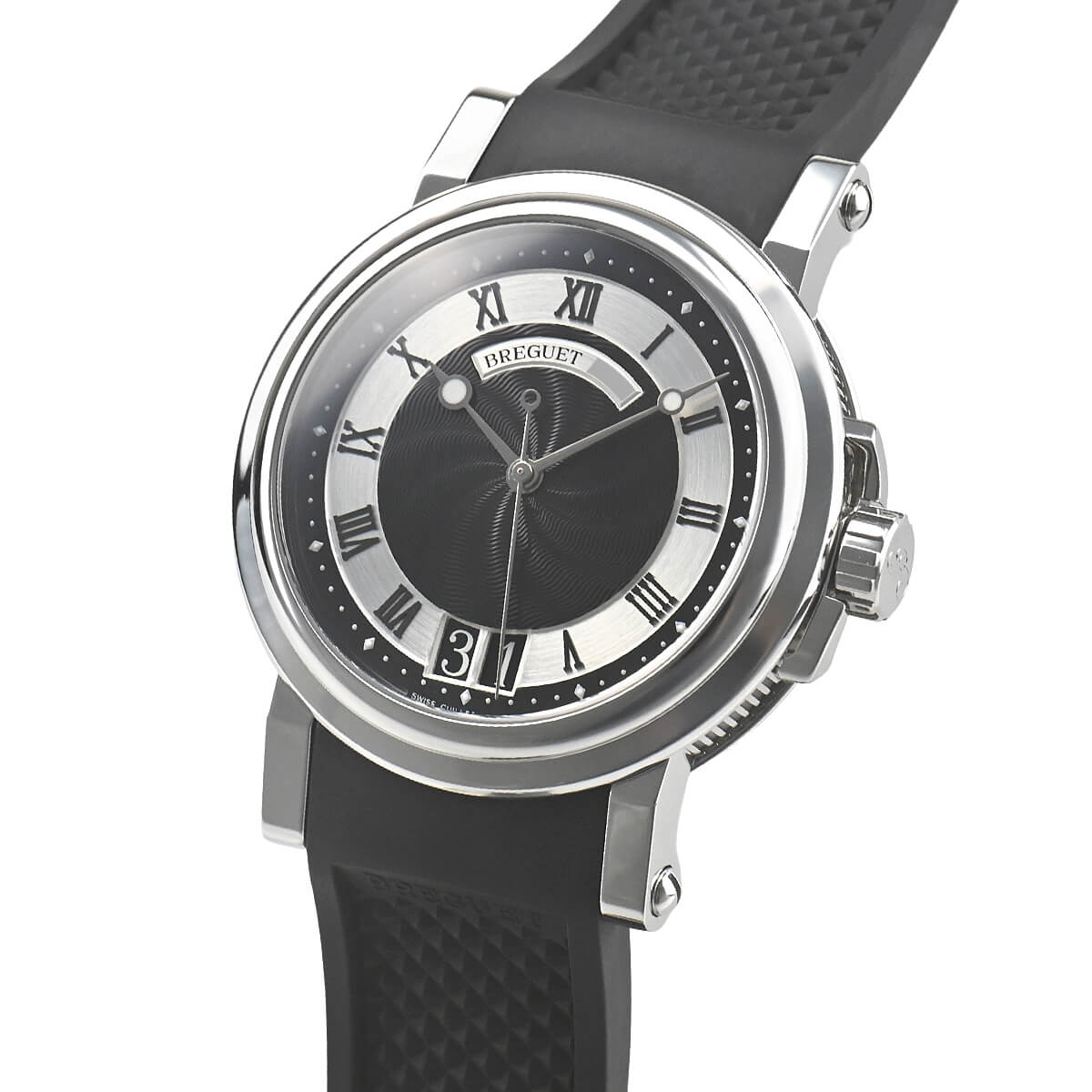 ブレゲのスポーツラインである「マリーン」シリーズは、ブレゲならではのエレガントを兼ね備えた美しいモデルです。ブレゲ針やサイドのコインエッジなどブレゲらしさを備えつつビッグデイト表示もあり、機能性も重視されています。