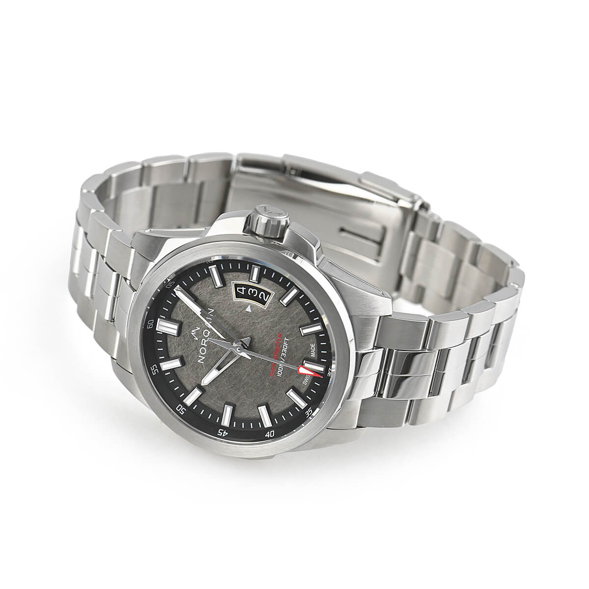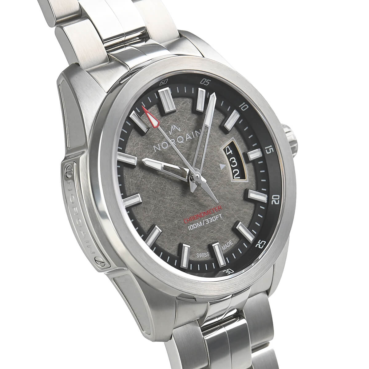 2019年に創業したノルケインの300本限定モデル「インディペンデンス19」。文字盤は特徴的な「オールドサテンフィニッシュ」ダイヤルにブラックのインサイドベゼル、立体的なインデックスを配し、カレンダーは「過去」「現在」そして「未来」を表示する仕様になっています。