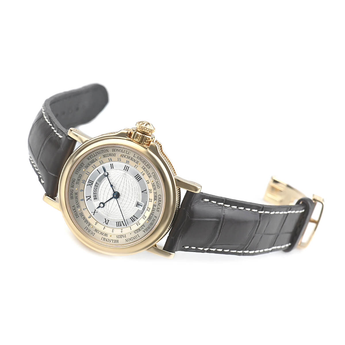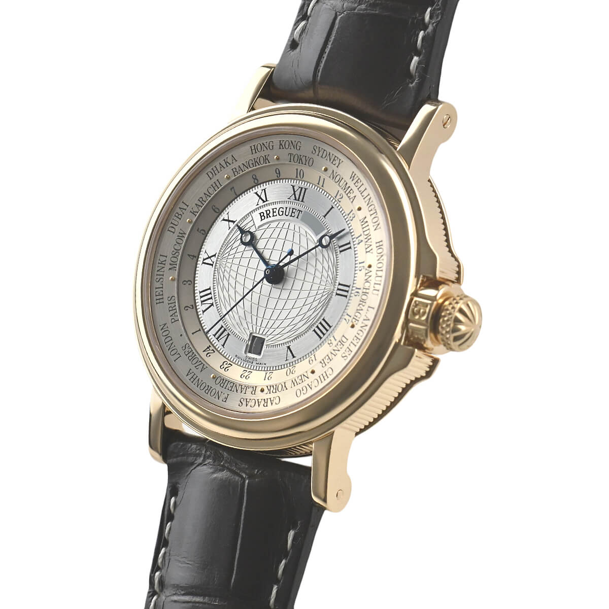 ブレゲのスポーツラインである「マリーン」シリーズは、ブレゲならではのエレガントを兼ね備えた美しいモデルです。こちらの「マリーン デュオタイマー」は、外周に24ヶ国のタイムゾーン表示がなされたワールドタイムモデルです。