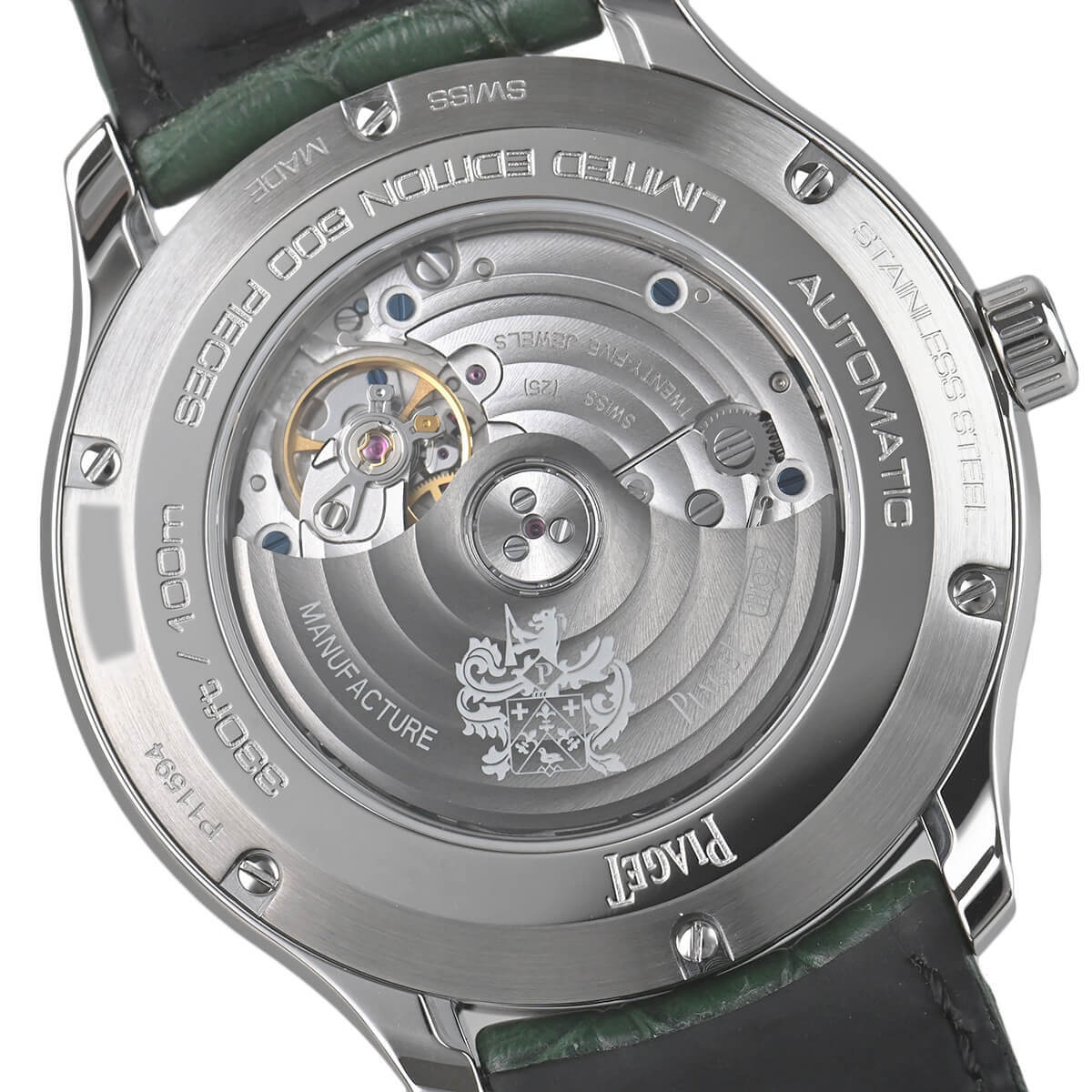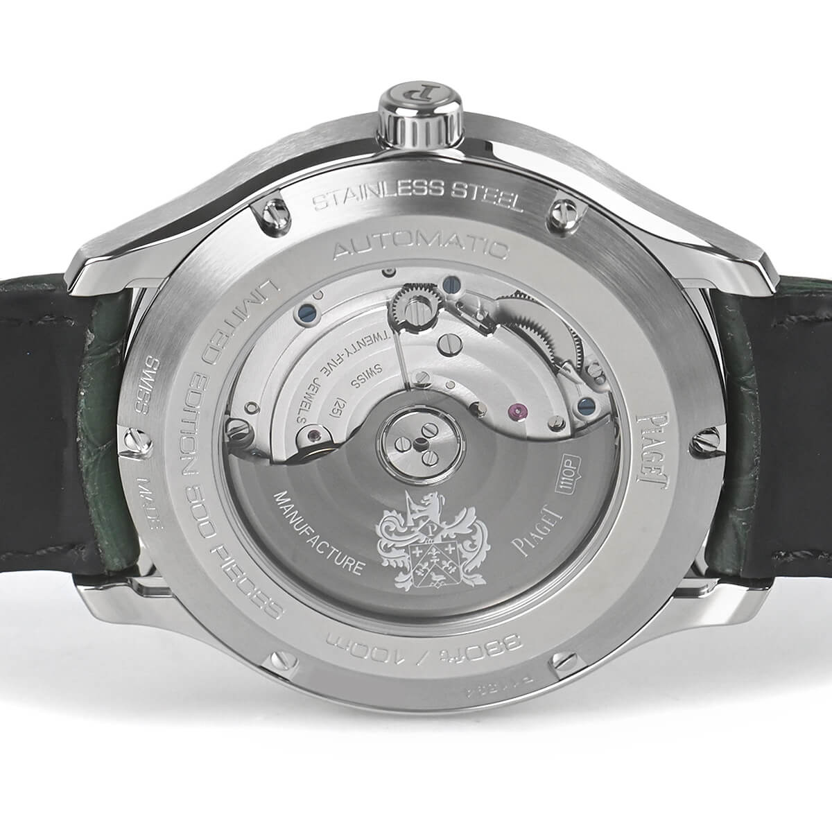 シースルーバックからは、新しく開発された1110Pピアジェ自社製極薄自動巻ムーブメントが鑑賞できます。