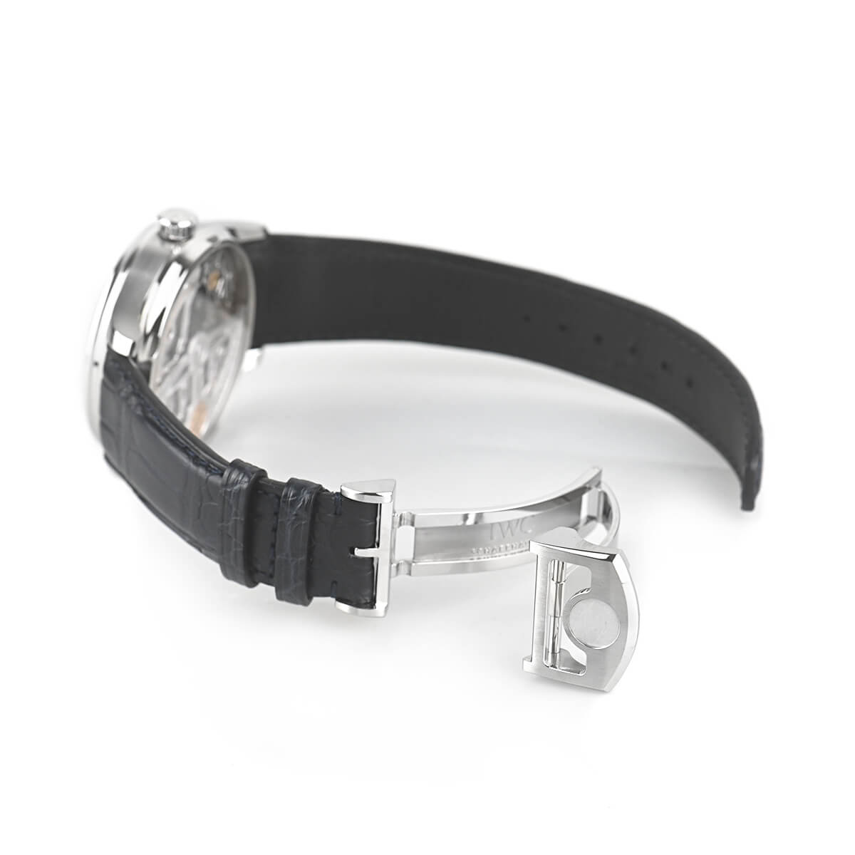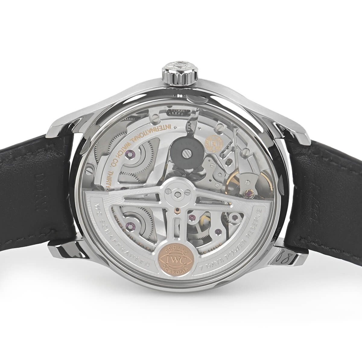 この時計を語るうえで欠かせないのは、その大きさやデザインだけでなく、搭載されているムーブメントでしょう。新たに開発されたキャリバー52000シリーズでは、IWC特有のペラトン自動巻き機構に改良が加えられ、巻き上げ爪、ローター軸受けに耐久性に優れたセラミックを採用。