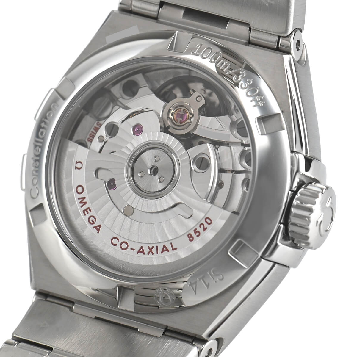 ムーブメントには50時間パワーリザーブの自動巻きコーアクシャルキャリバー8520を搭載し、シースルーバックからご覧いただけます。