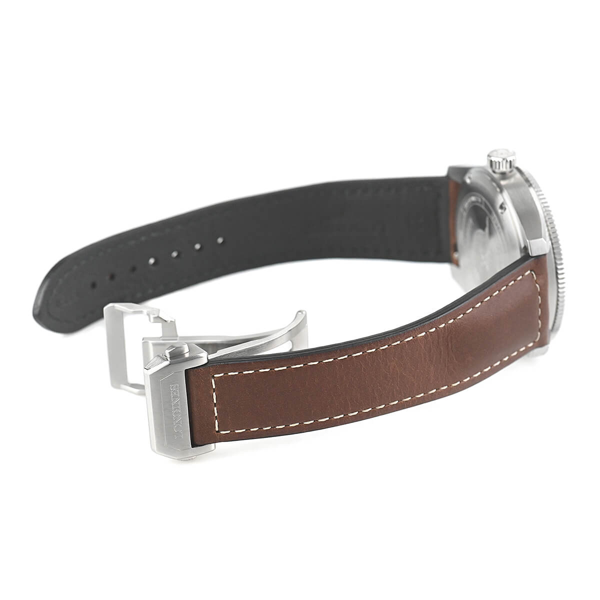 クラシックなパイロットウォッチのデザインを踏襲しながらも、アワーインデックスと針にはスーパールミノバを塗布し、更に秒針の先端にはオレンジのペイントを施してコックピット内や暗所での視認性の向上を図っています。