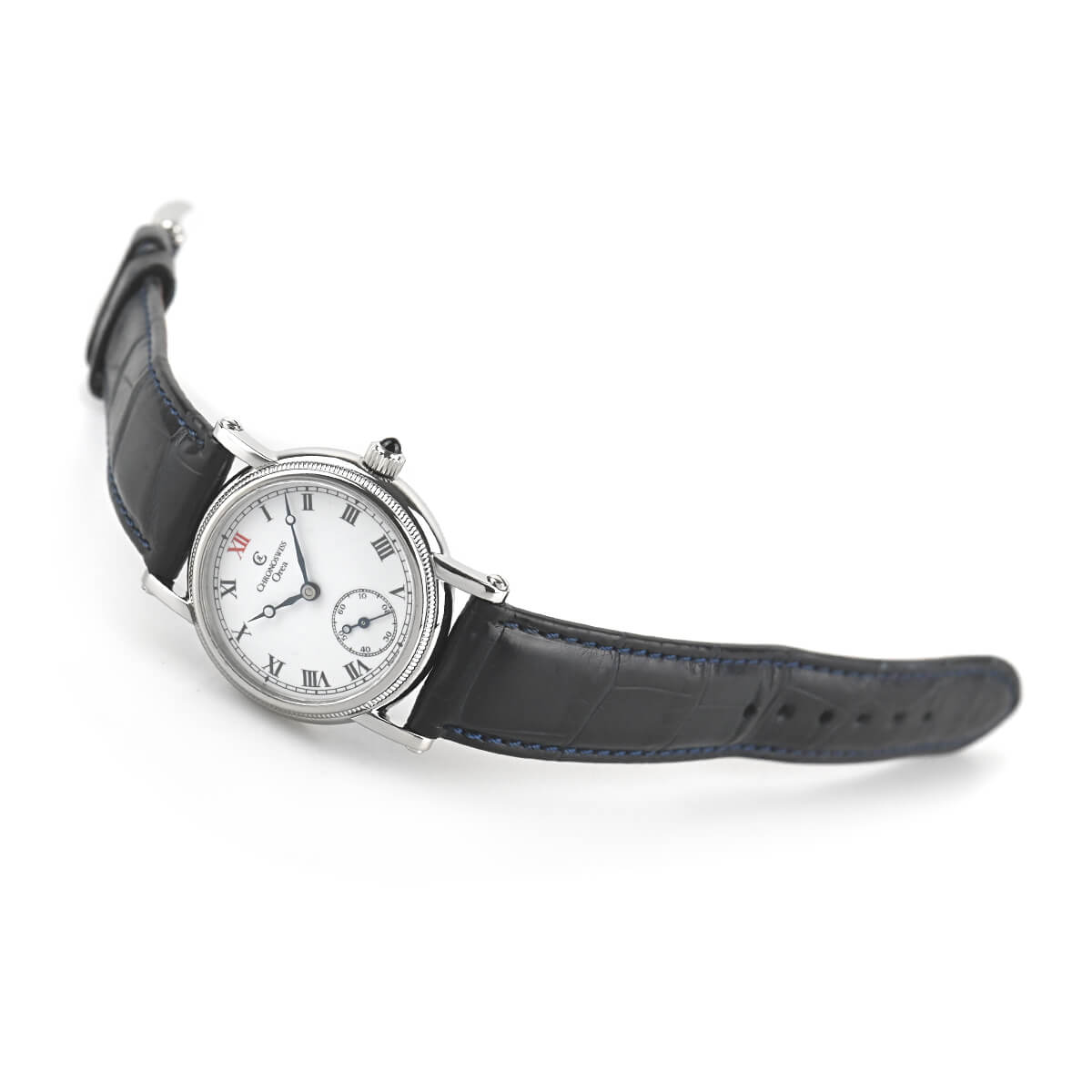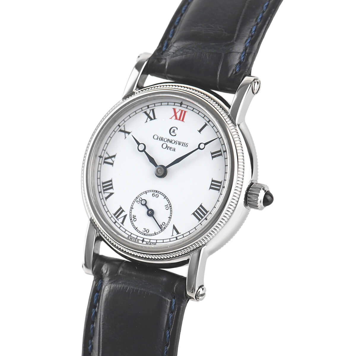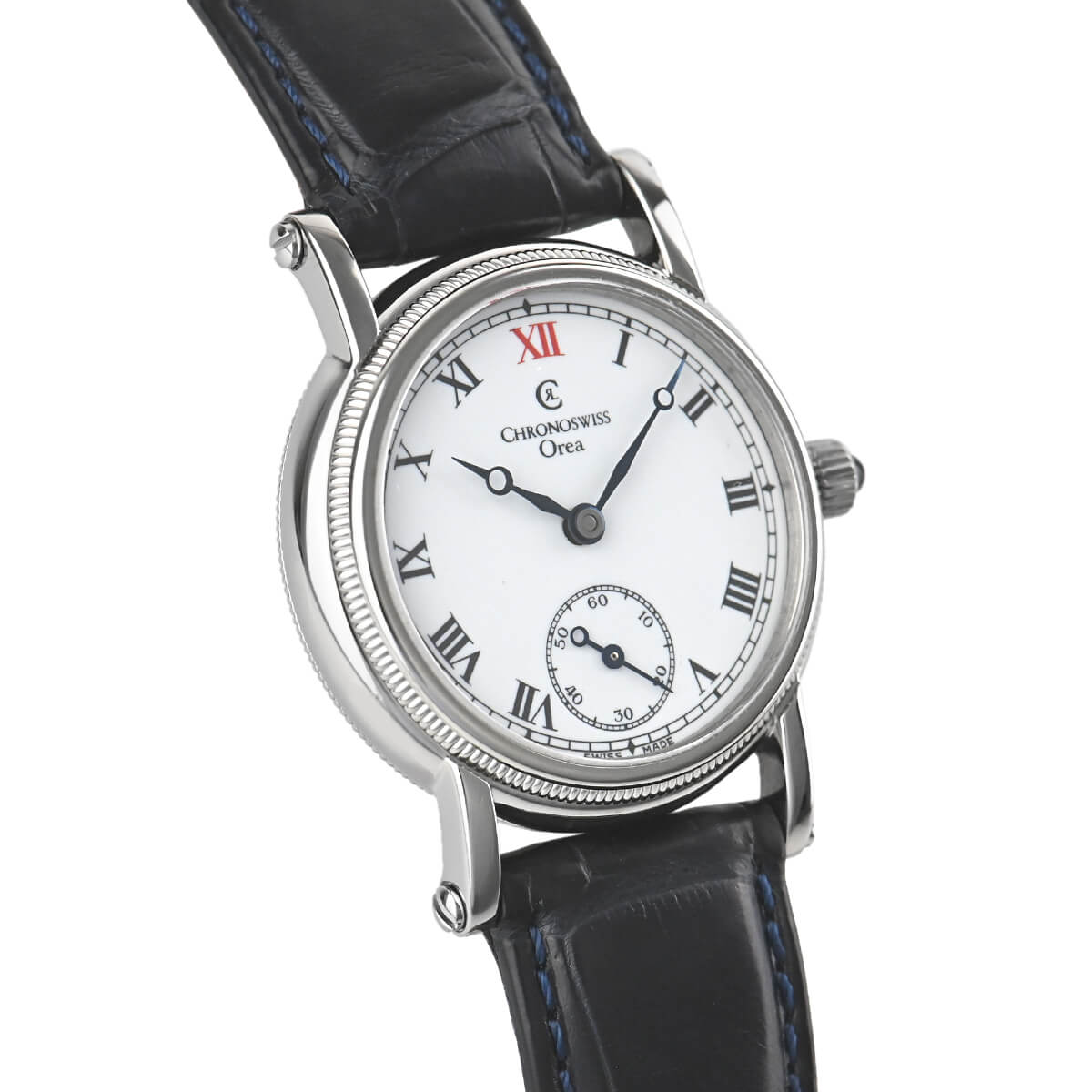 「美しきもの」という意味のネームを持つ「オレア」。得も言われぬ白色のエナメル文字盤が、その名の通りに美しいモデルです。