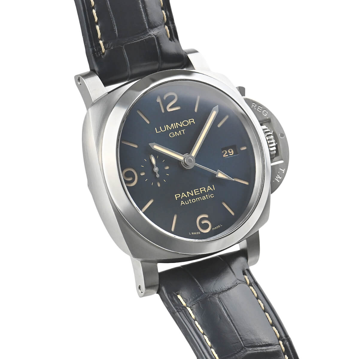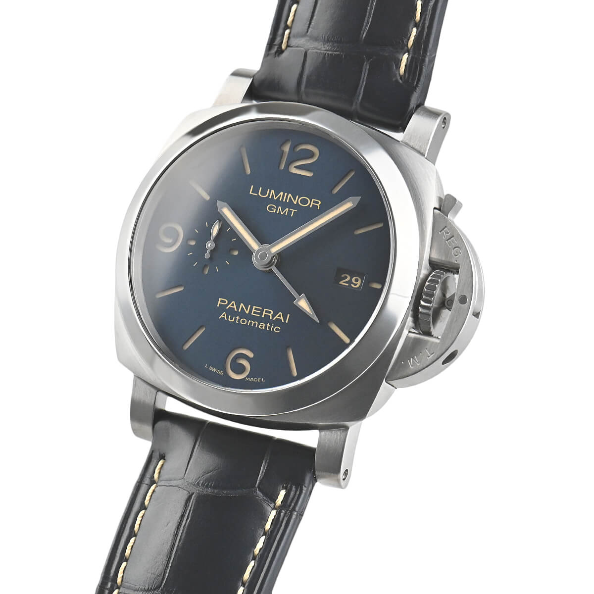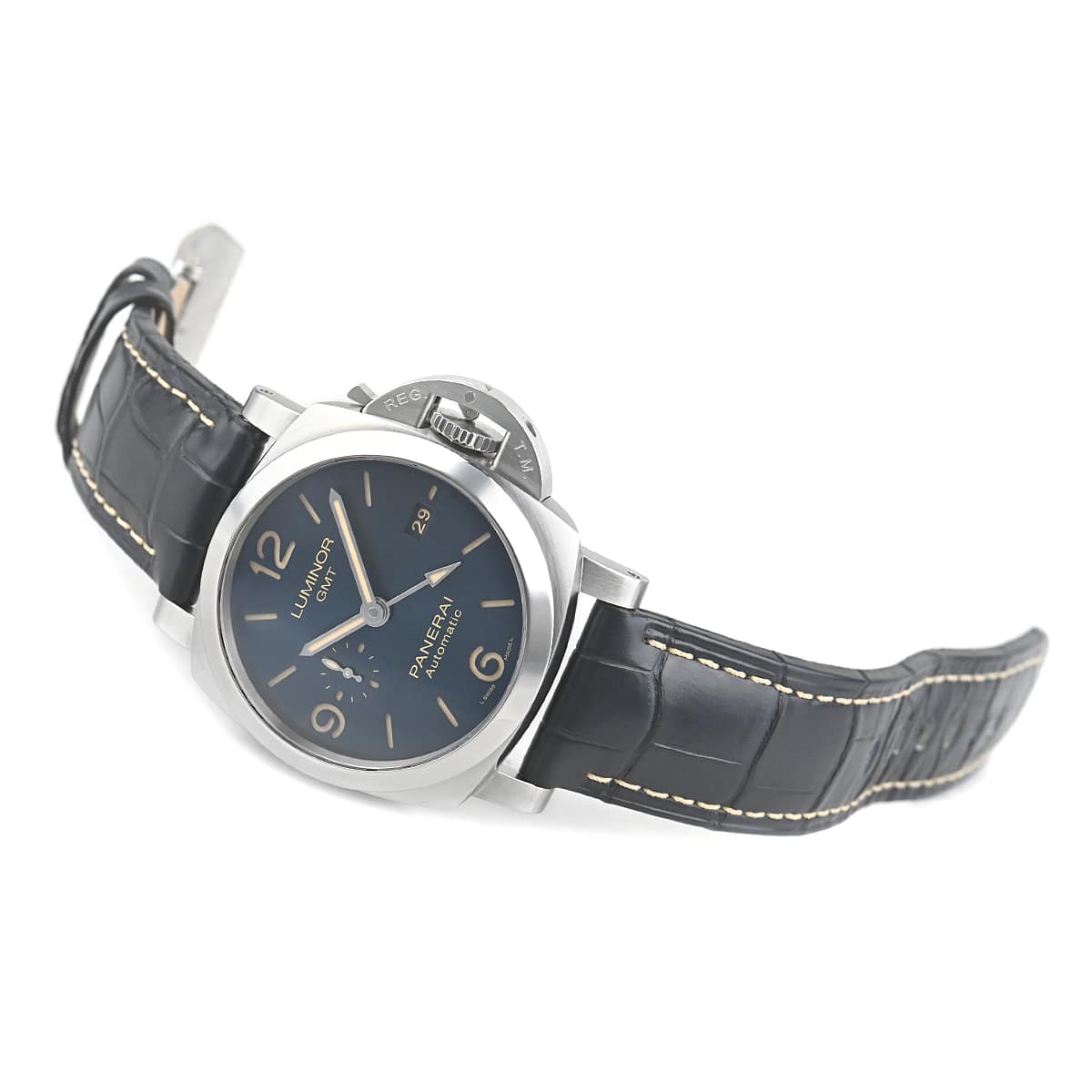 X番“2021年製”【PAM01033】ルミノールGMTが入荷しました。サンレイ加工が施されたブルーの文字盤がとても上品なモデルです。