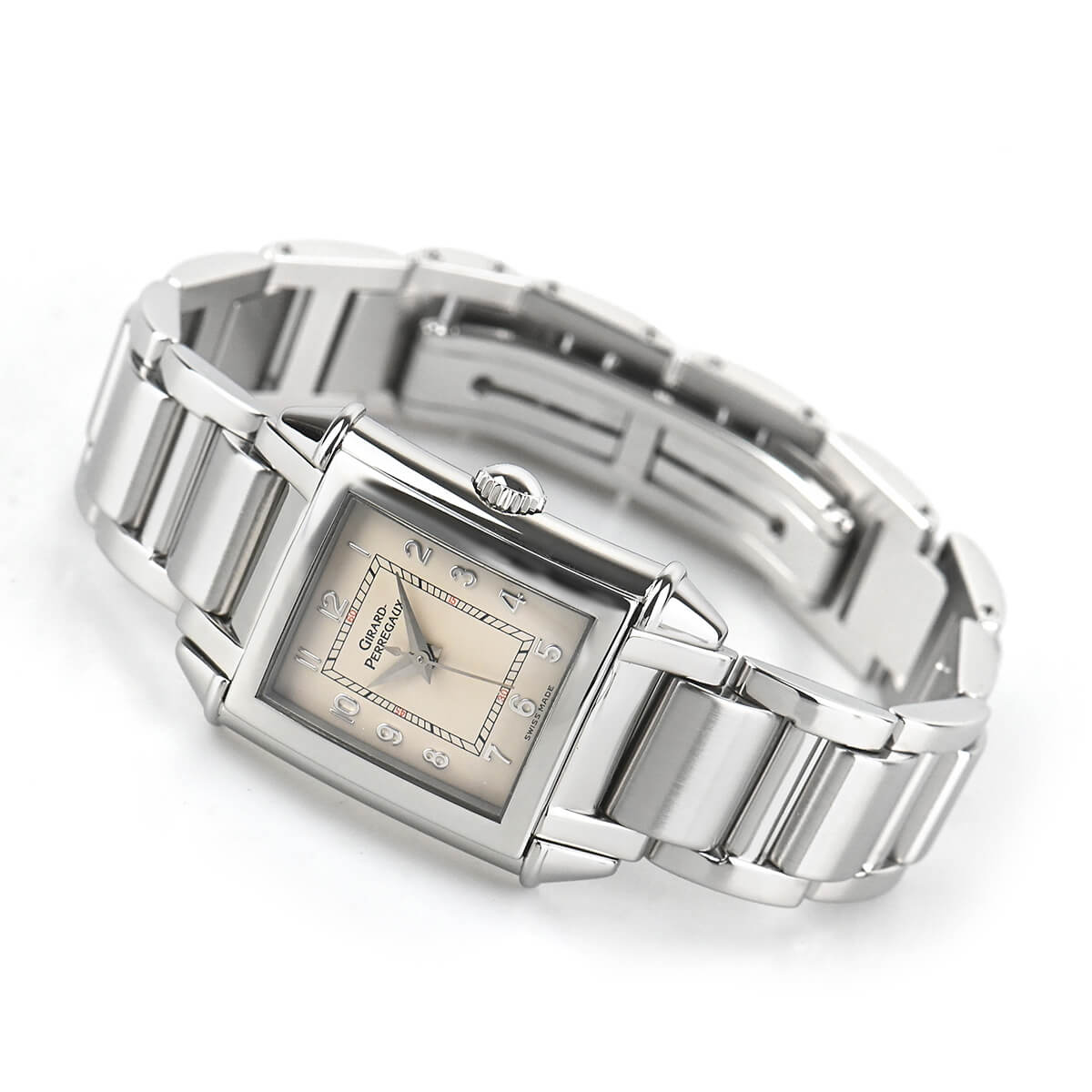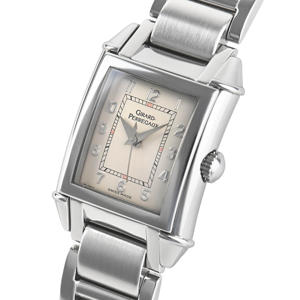 時計製造工芸の復活期である1945年、ジラール・ペルゴはアールデコからインスパイアされた丸みをおびたレクタンギュラー(長方形)ケースのモデルを創作しました。「ヴィンテージ1945」は、1995年にその復刻版としてデザインされたシリーズです。