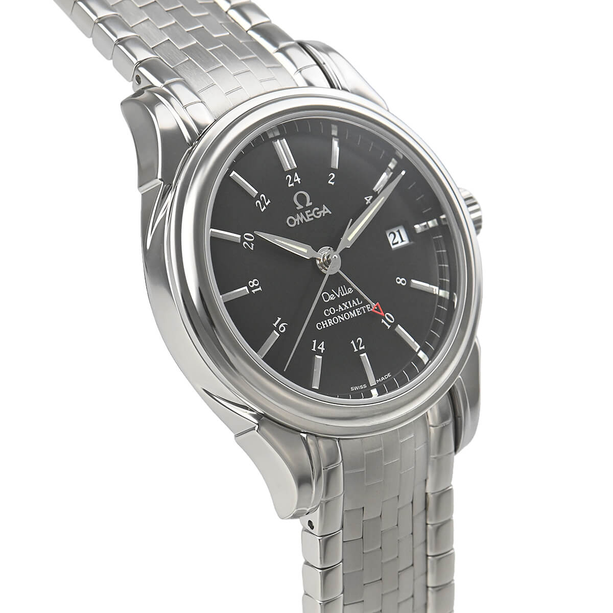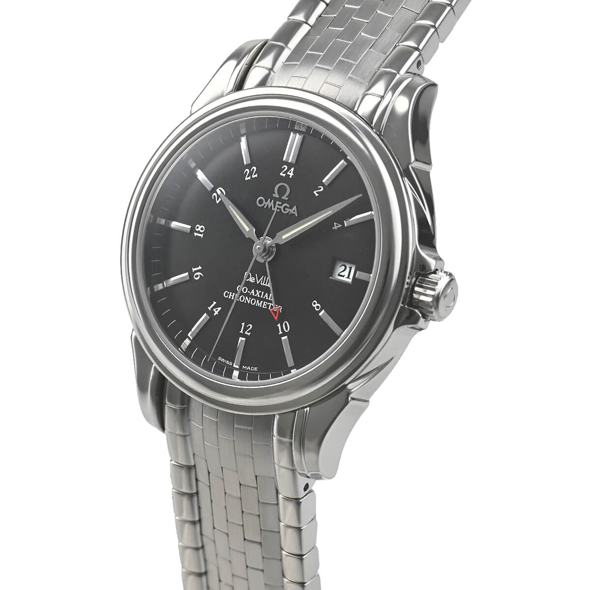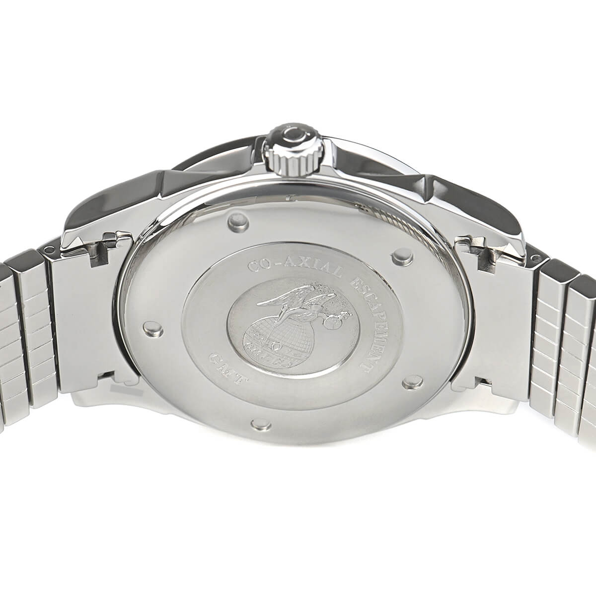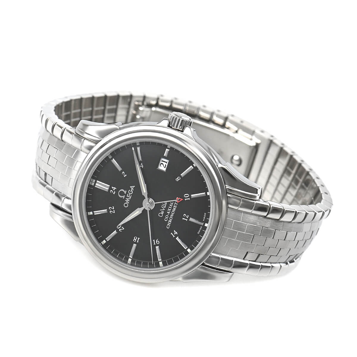 オメガが誇るテクロノジーであるコーアクシャル・エスケープメントを搭載した「デ・ヴィルGMT 4533-51」。このモデルのデザインは、アンティークモデルにオマージュされたもの。