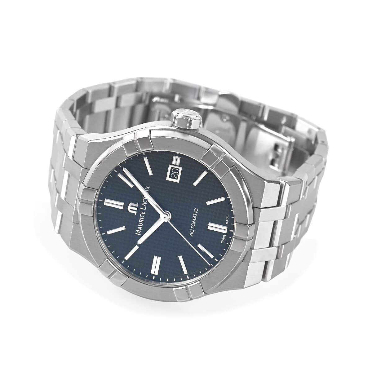 モーリス・ラクロアが2016年から展開するライン「アイコン」シリーズ。こちらの【アイコン オートマティック】は、1990年代に人気を博したベゼル上の6つの爪が特徴の「カリプソ」を現代風にアップデートして復刻されたモデル。