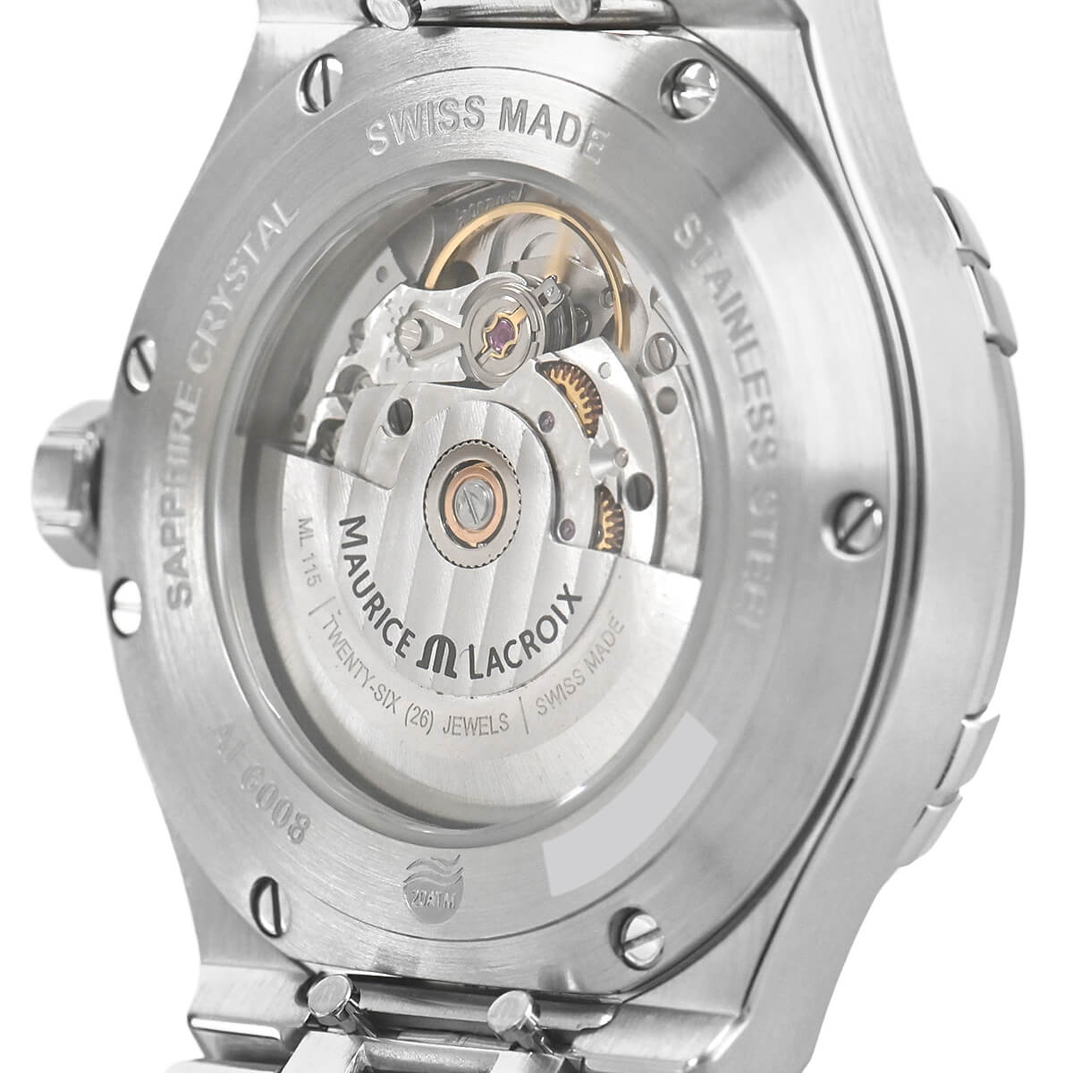 シースルーバックから覗くムーブメントには自動巻きの「ML115」を搭載し、防水性能も20気圧防水を確保していますので一年を通じて安心してお使いになれます。