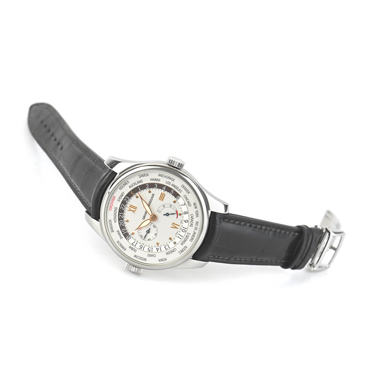 WW.TCシリーズのワールドタイム・パワーリザーブモデル「WW.TCフィナンシャルパワーリザーブ」。こちらは、1861年に横浜の外国人居留区でジラール・ペルゴの創設者の弟のフランソア・ペルゴにより、スイス時計が初めて輸入された事を讃えて作られた日本限定モデルで製作本数がわずか250本のリミテッドモデルです。