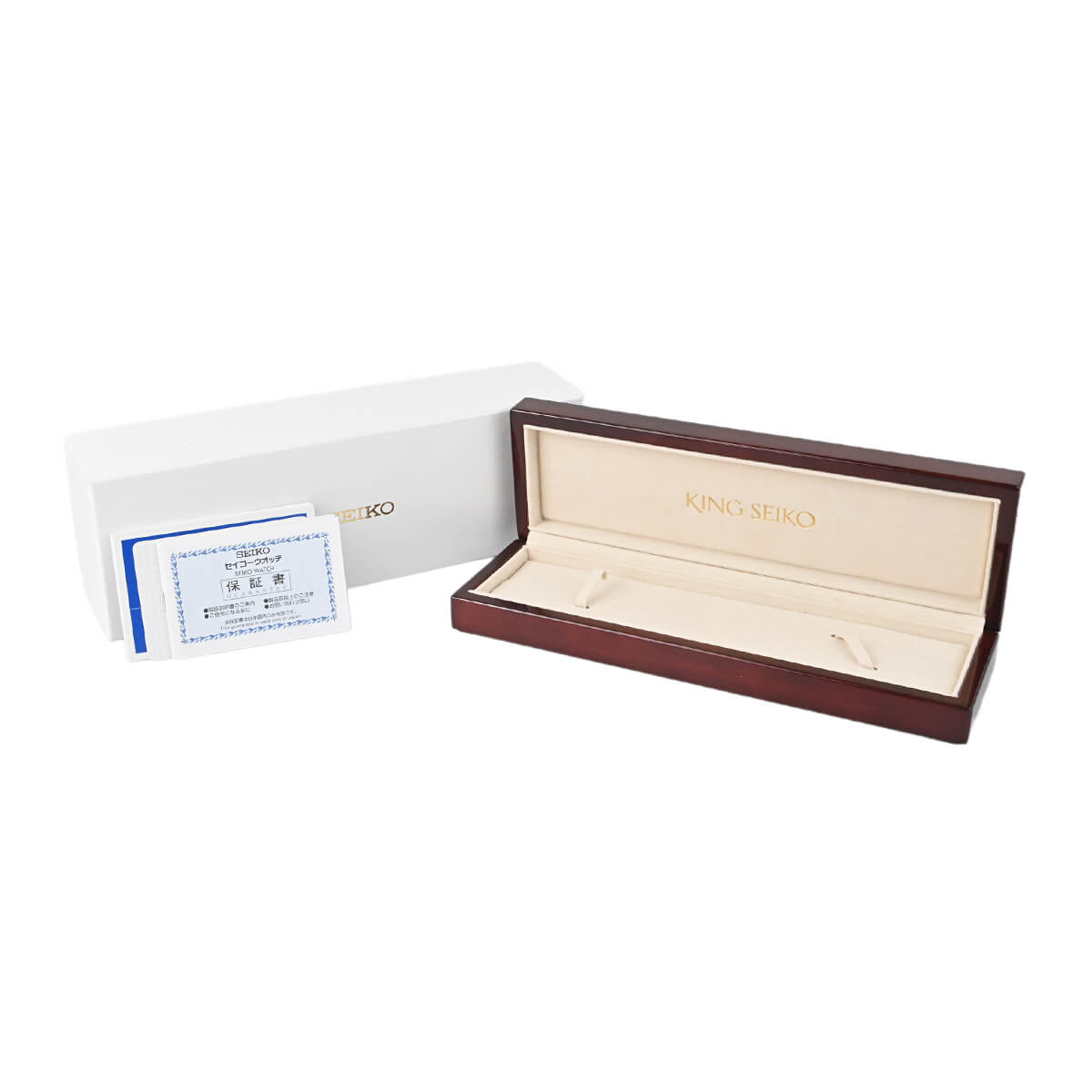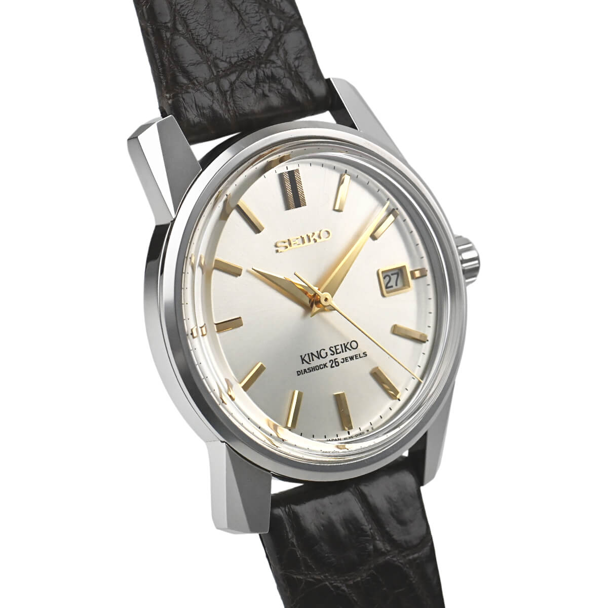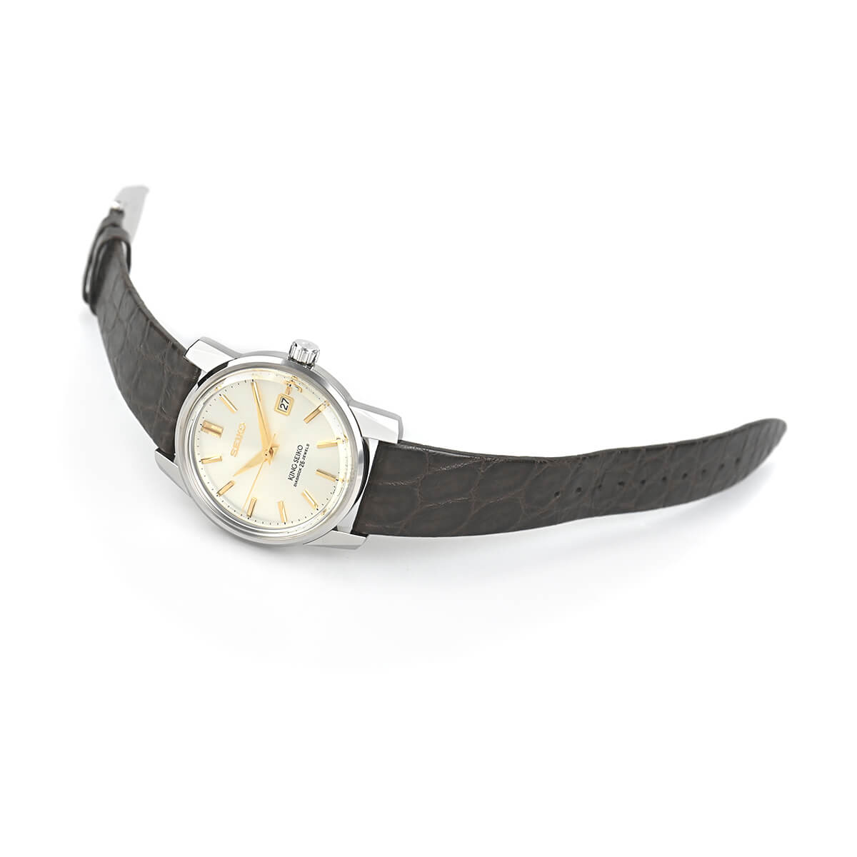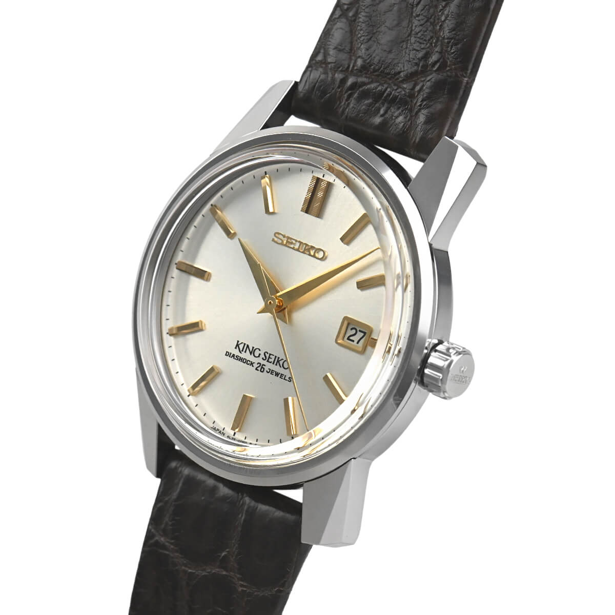 2022年に1700本限定で販売された「SDKA003」。“KSK”と呼ばれる2代目キングセイコーを忠実に再現したデザインでありながら、ケースサイズのアップや新形状のボックス型サファイアガラスの採用等、視認性や耐傷性の向上を実現しています。