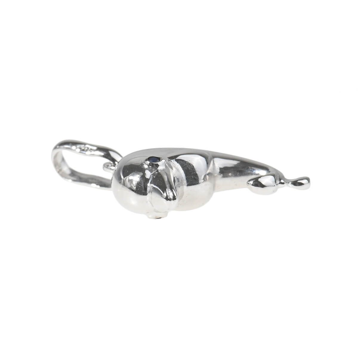 躍動感たっぷりのイルカをいきいきと表現した、ふっくらとしたフォルムが愛らしいホワイトゴールド製ペンダントヘッド。つぶらな瞳にはサファイアがセッティングされ、大人の遊び心たっぷり。長めのチェーンでデイリーに、首に沿うチョーカーでエレガントに、レザーやコットンのコードでカジュアルダウンしても素敵。さりげなくも印象に残る個性を感じる、ジェンダーレスに使えるファインジュエリーです。