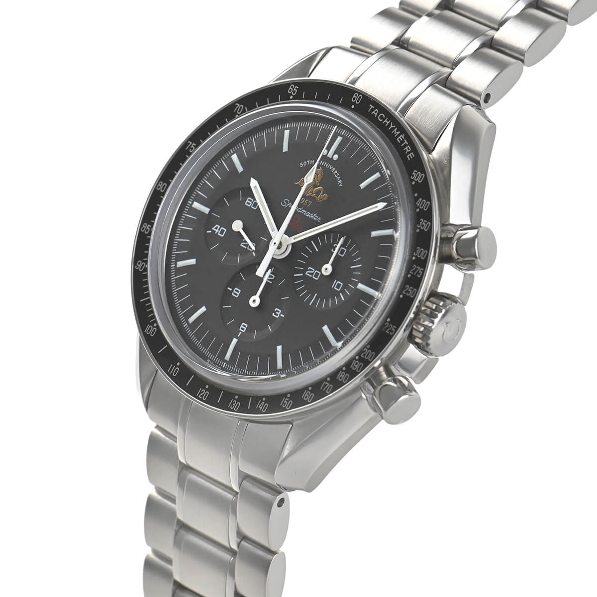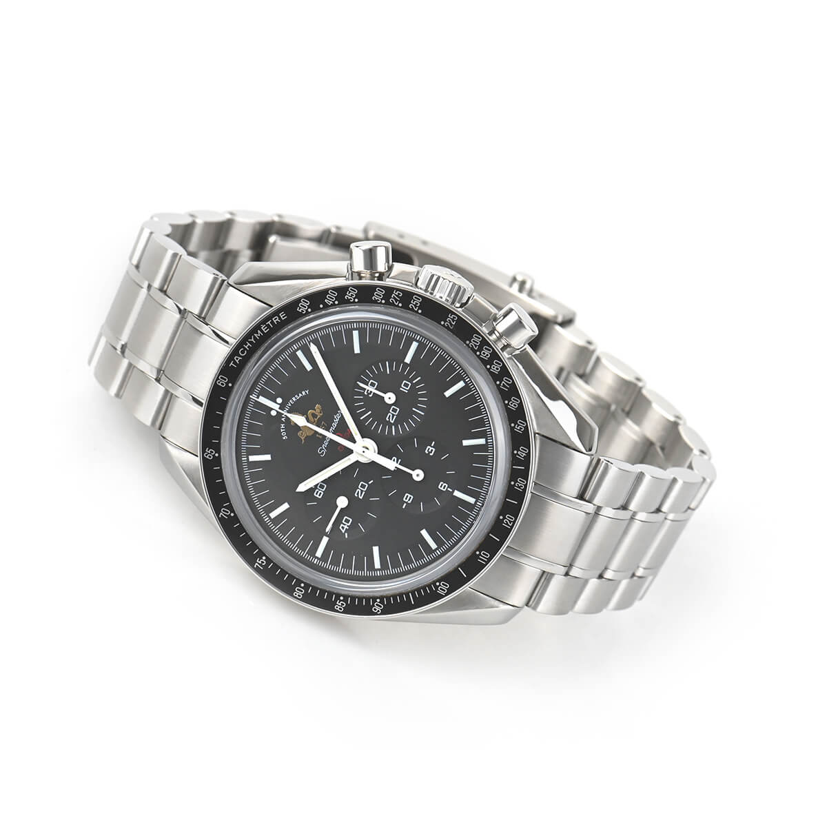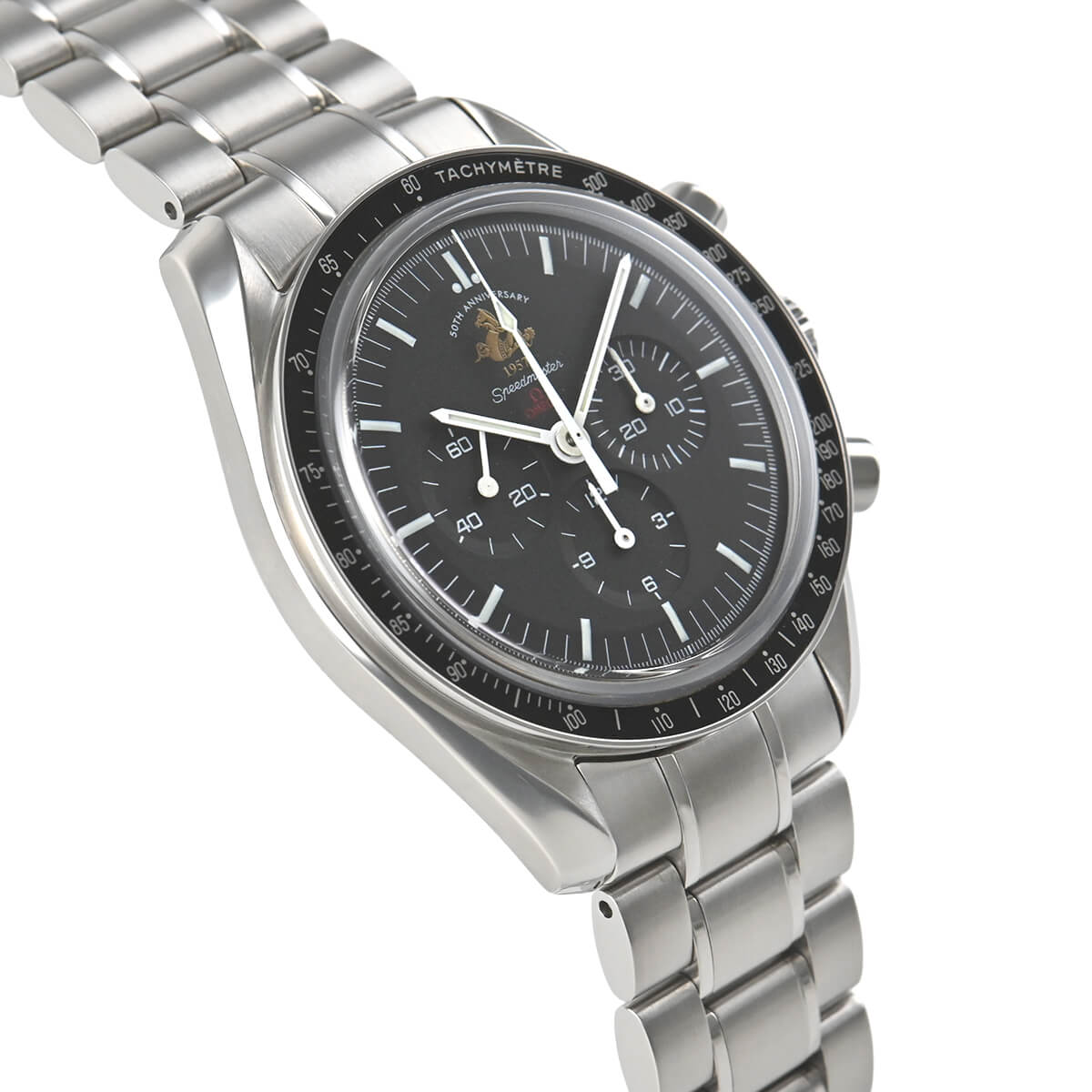 スピードマスタープロフェッショナルの50周年記念モデル「311.30.42.30.01.001」。世界限定5957本となり、12時位置にはシーホースのアイコンと「50TH ANNIVERSARY」の文字が刻まれております。