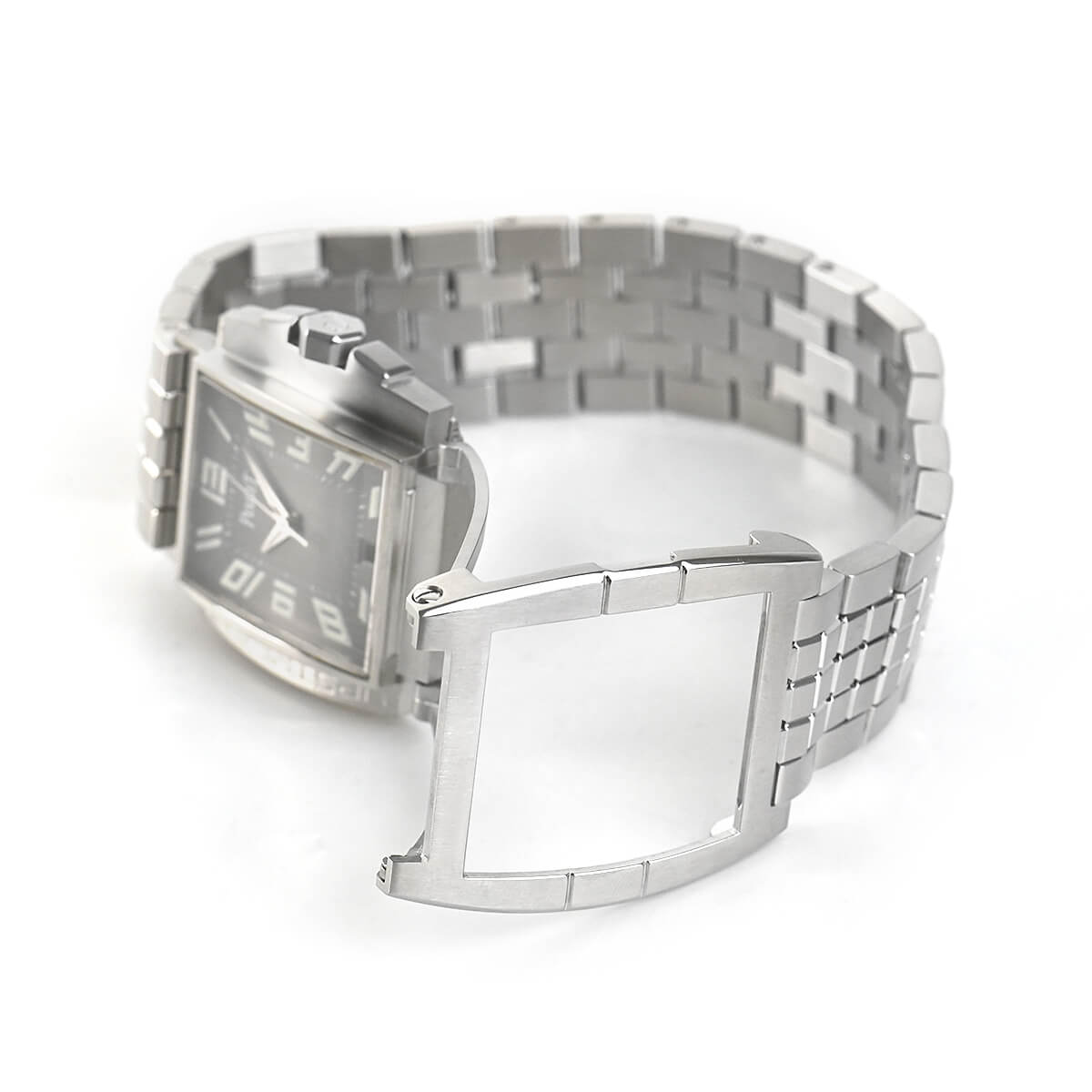 「アップストリーム」(逆流)という名にふさわしい、大胆さを持ったスポーティな時計です。べゼルが折りたたみ式バックルになっている独創的な構造を持ち、ベゼルを持ち上げて開閉します。