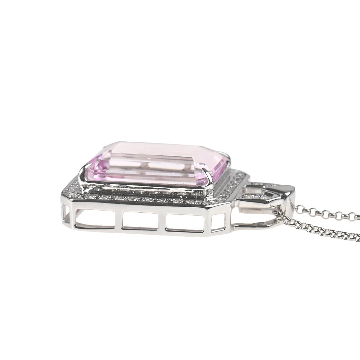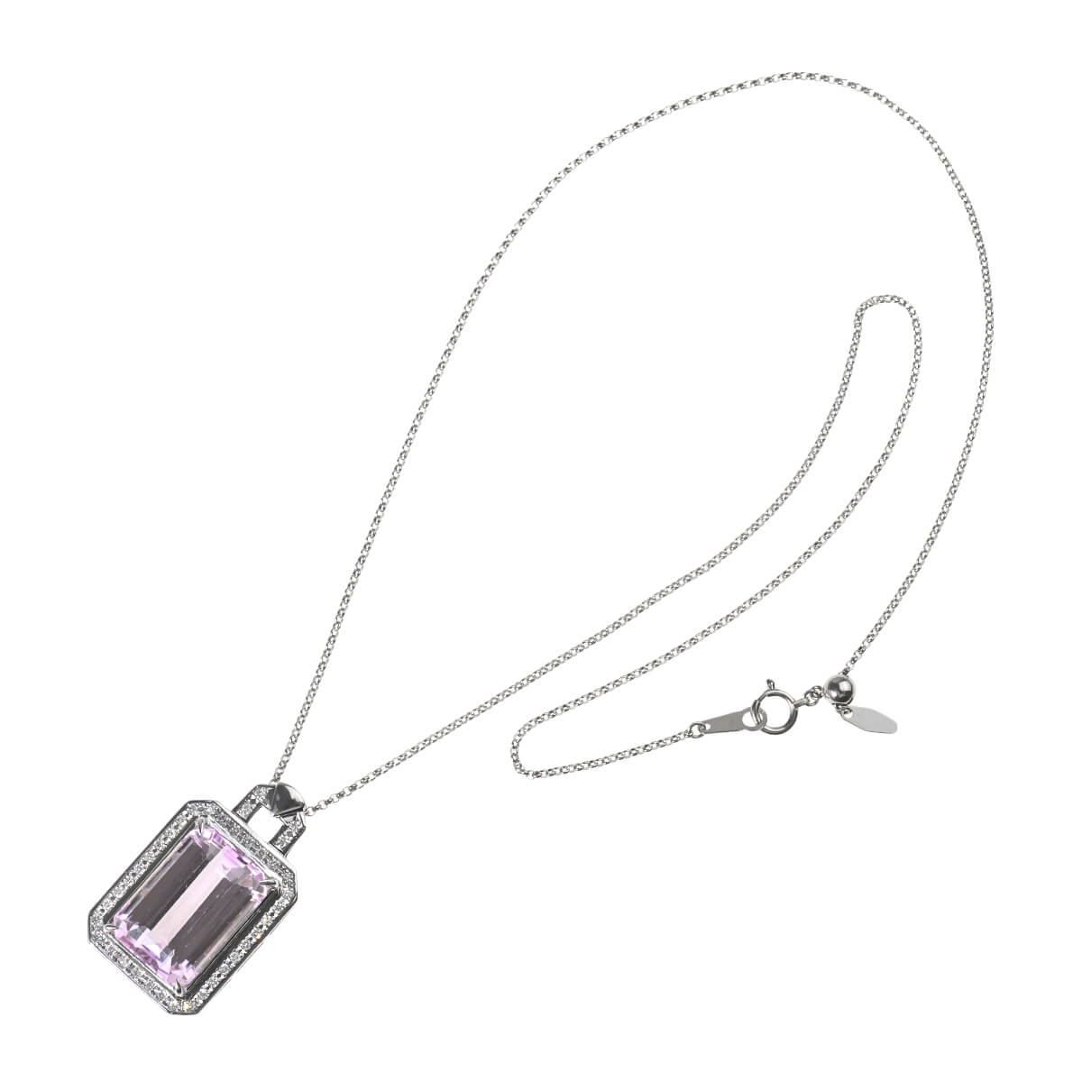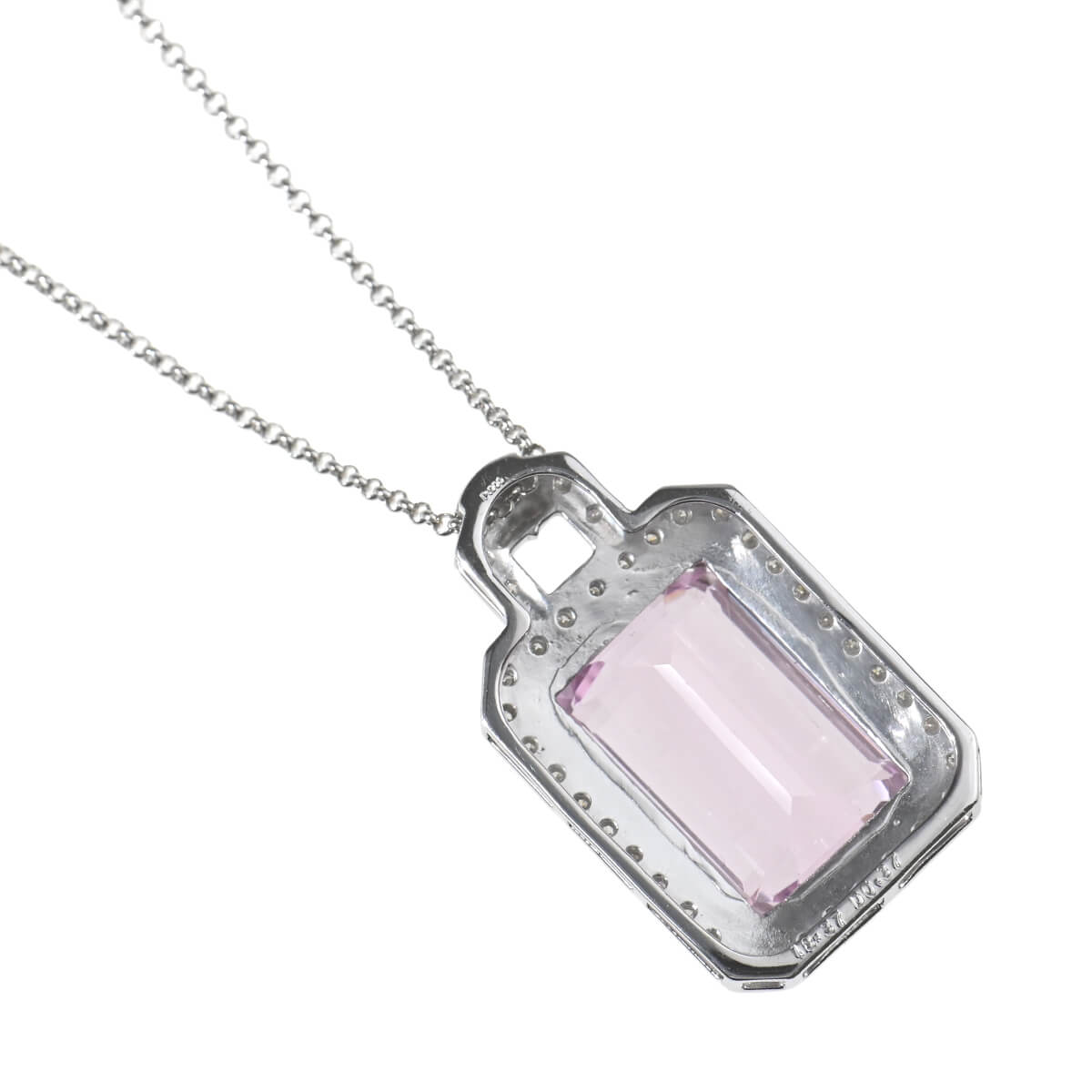 発見者であるクンツ博士に由来してその名が付けられたと言われている、ギリシャ語で“燃えて灰になる”を意味する鉱物「スポデュメン」の一種である「クンツァイト」。見る者の心を癒し和らげてくれる、愛にあふれた上品で清楚なライラックピンクが美しい天然石です。透明感溢れる上品なライラックピンクが美しいクンツァイトを煌めくダイヤモンドで囲んだ、プラチナ製ペンダントネックレス。繊細なきらめきにあふれたダイヤモンドがクンツァイトの色彩を一層惹きたてて、デコルテを瑞々しく彩ります。大胆なボリュームをもちながら可憐で繊細な雰囲気もあわせもつ、華やかな個性あふれる洗練されたファインジュエリーです。