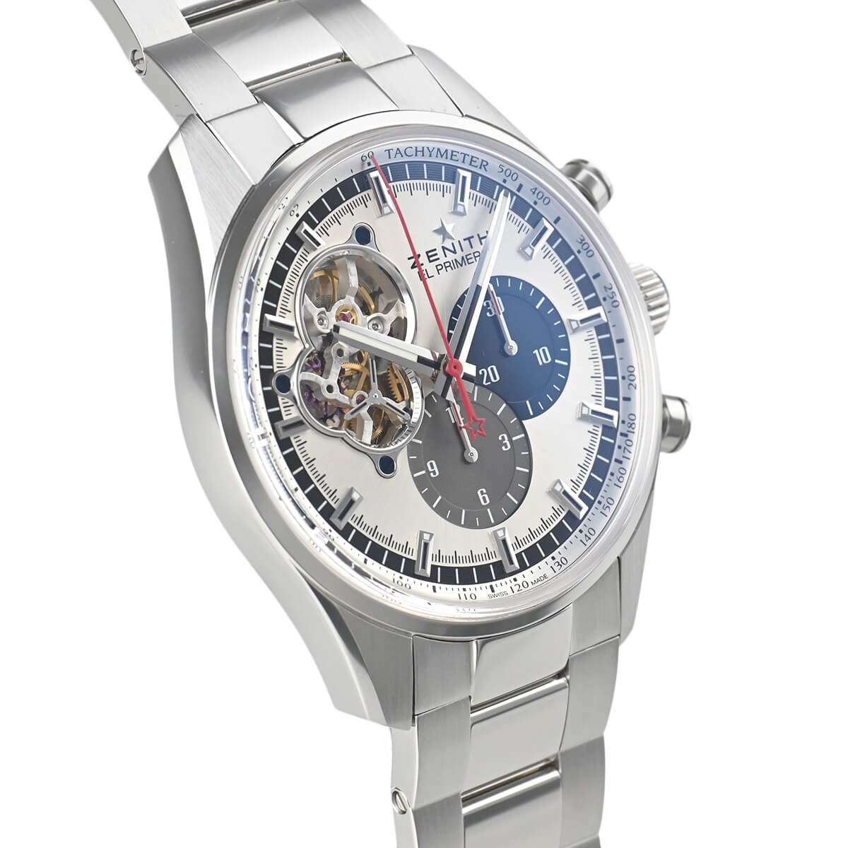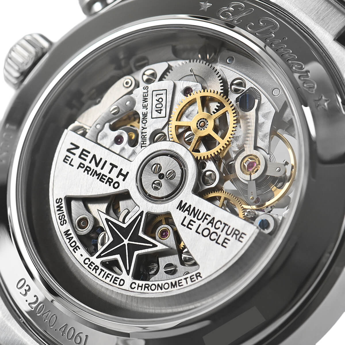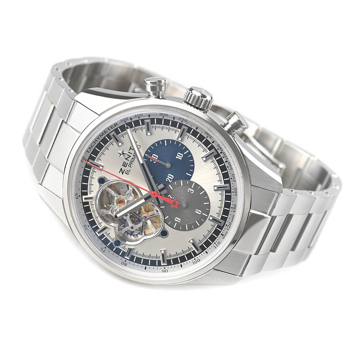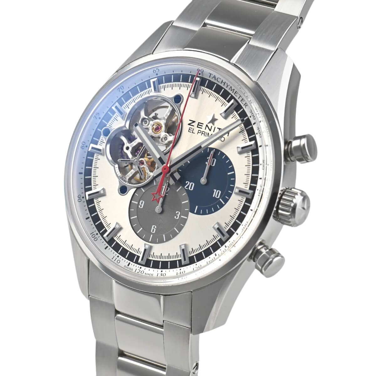 1969年発表の初代エル・プリメロをイメージした色使いに、現代のゼニスのシンボルであるダイヤルをくりぬいた「窓」を融合させた「クロノマスター エルプリメロ オープン」。現在まで続く自動巻きクロノグラフの名機「エル・プリメロ」の歴史を表した一本といえます。