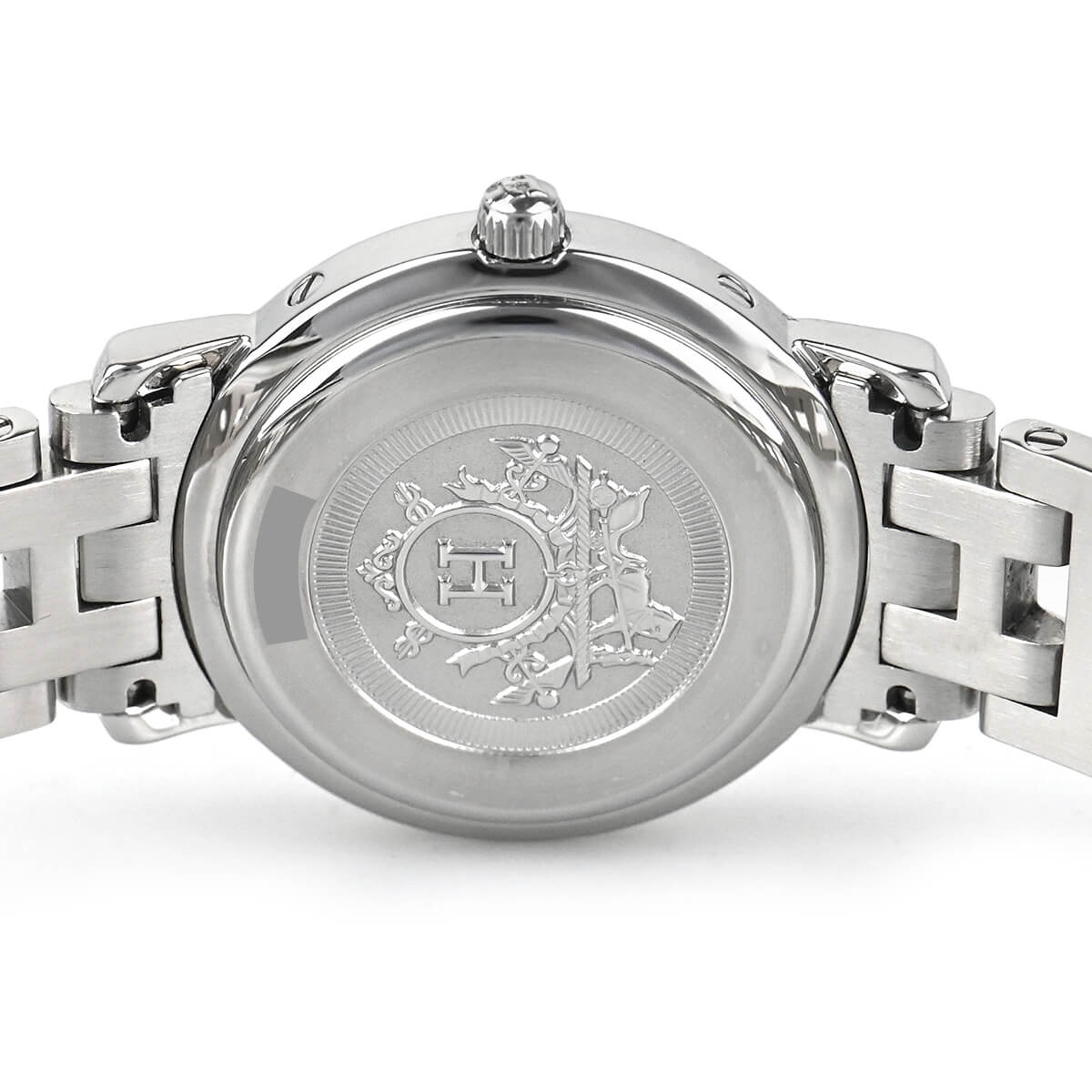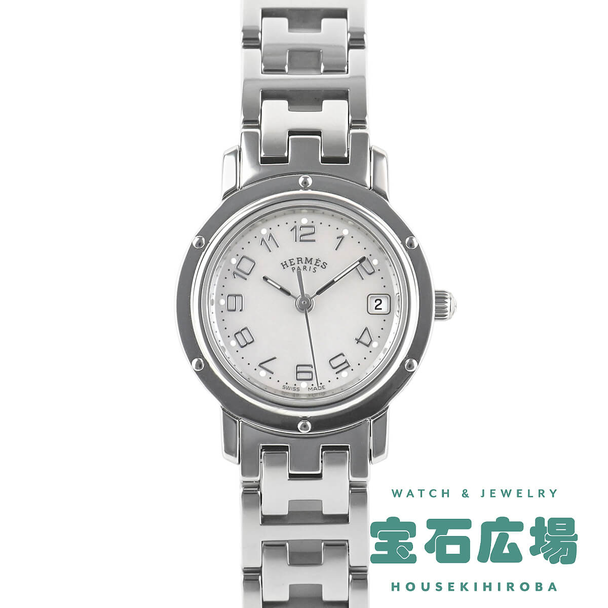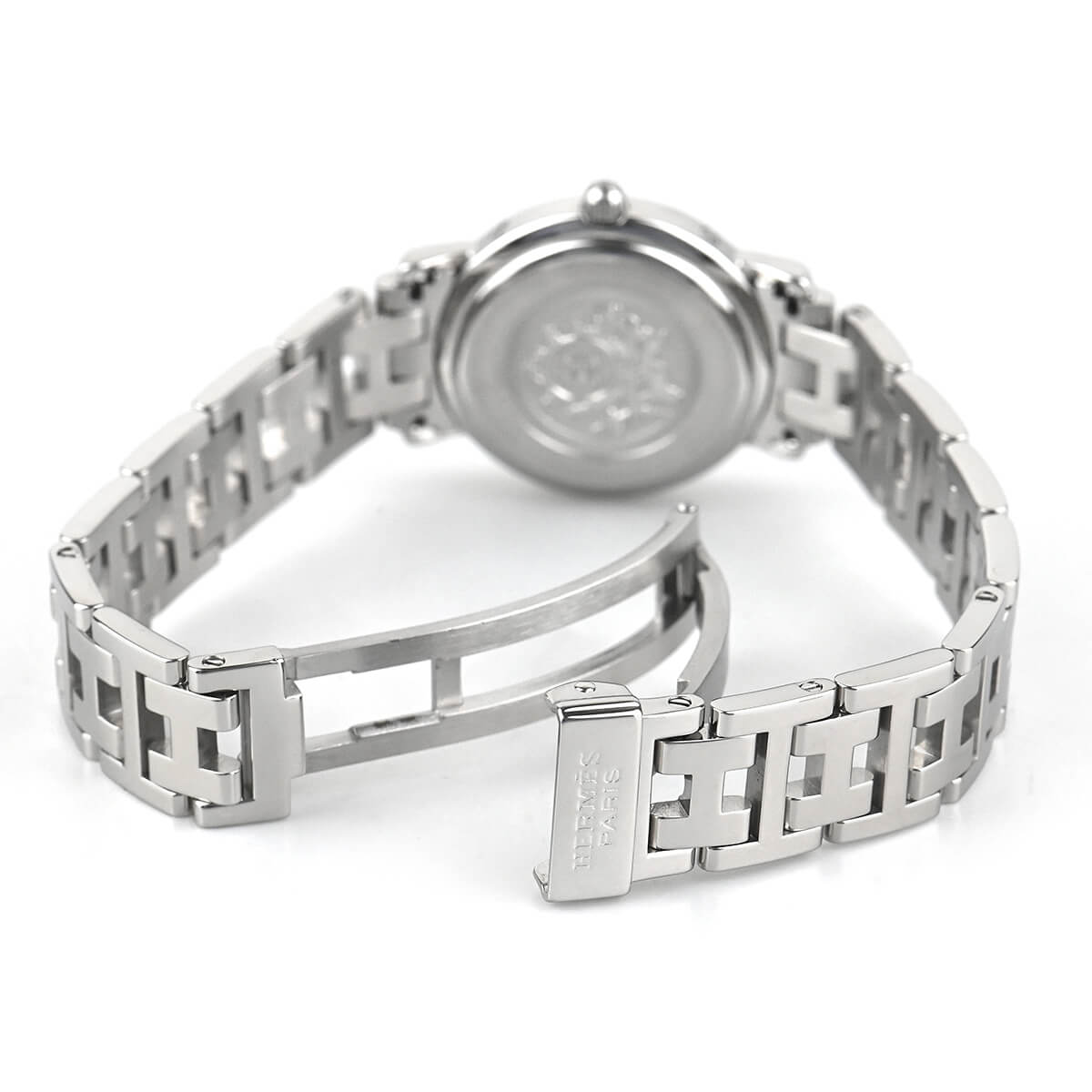 エルメスの定番モデル「クリッパー」。こちらは文字盤にピンクシェルを使用した華やかなモデルです。